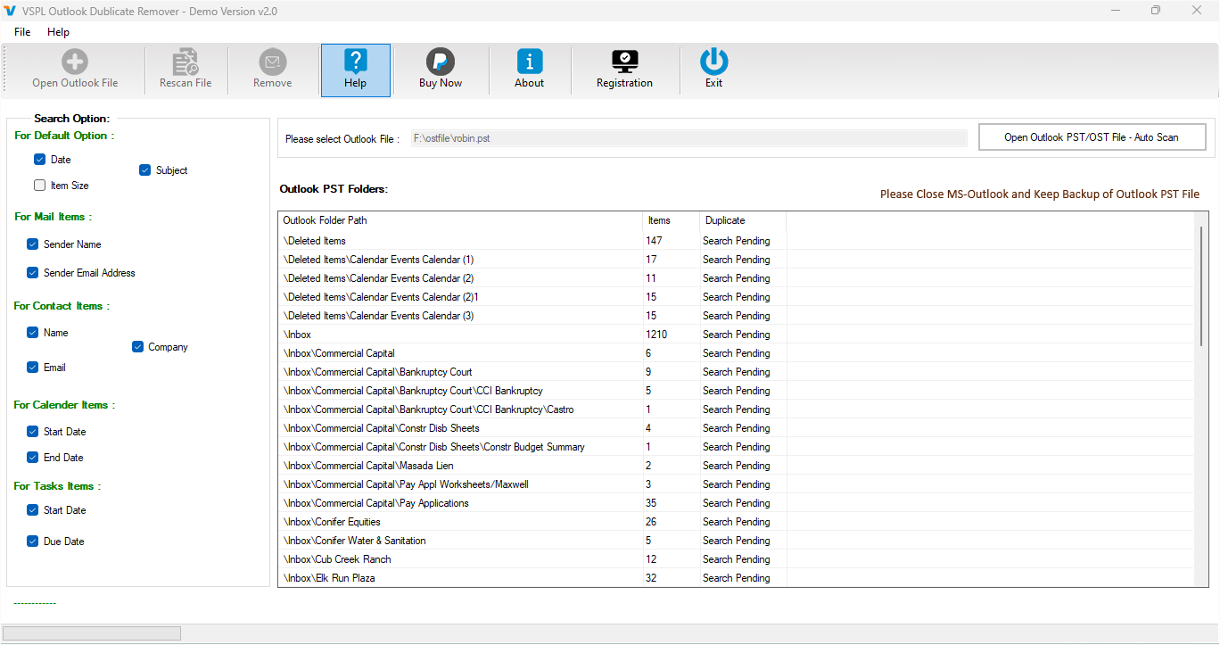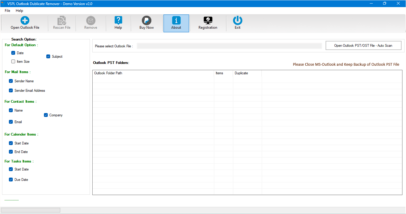 Full Version: There is no limitation of VSPL Outlook Duplicate Remover.