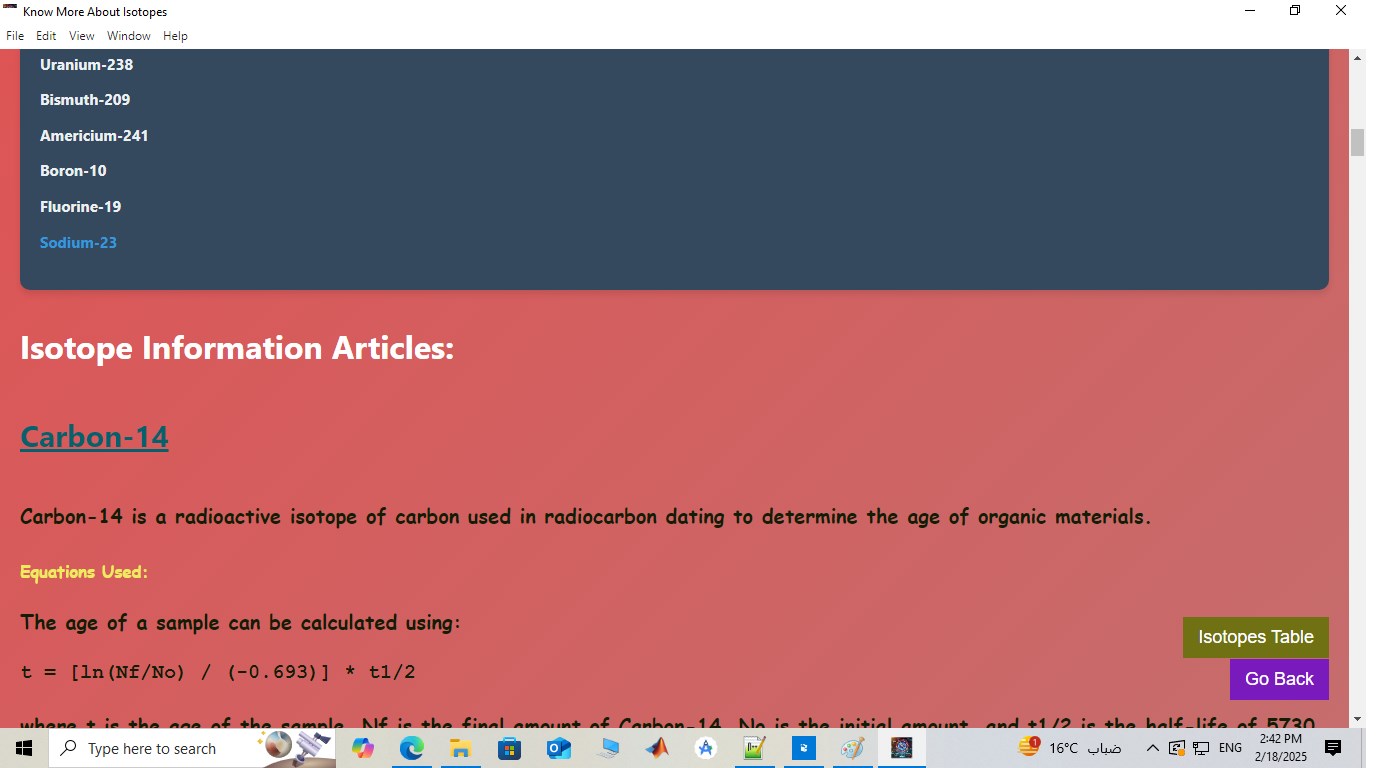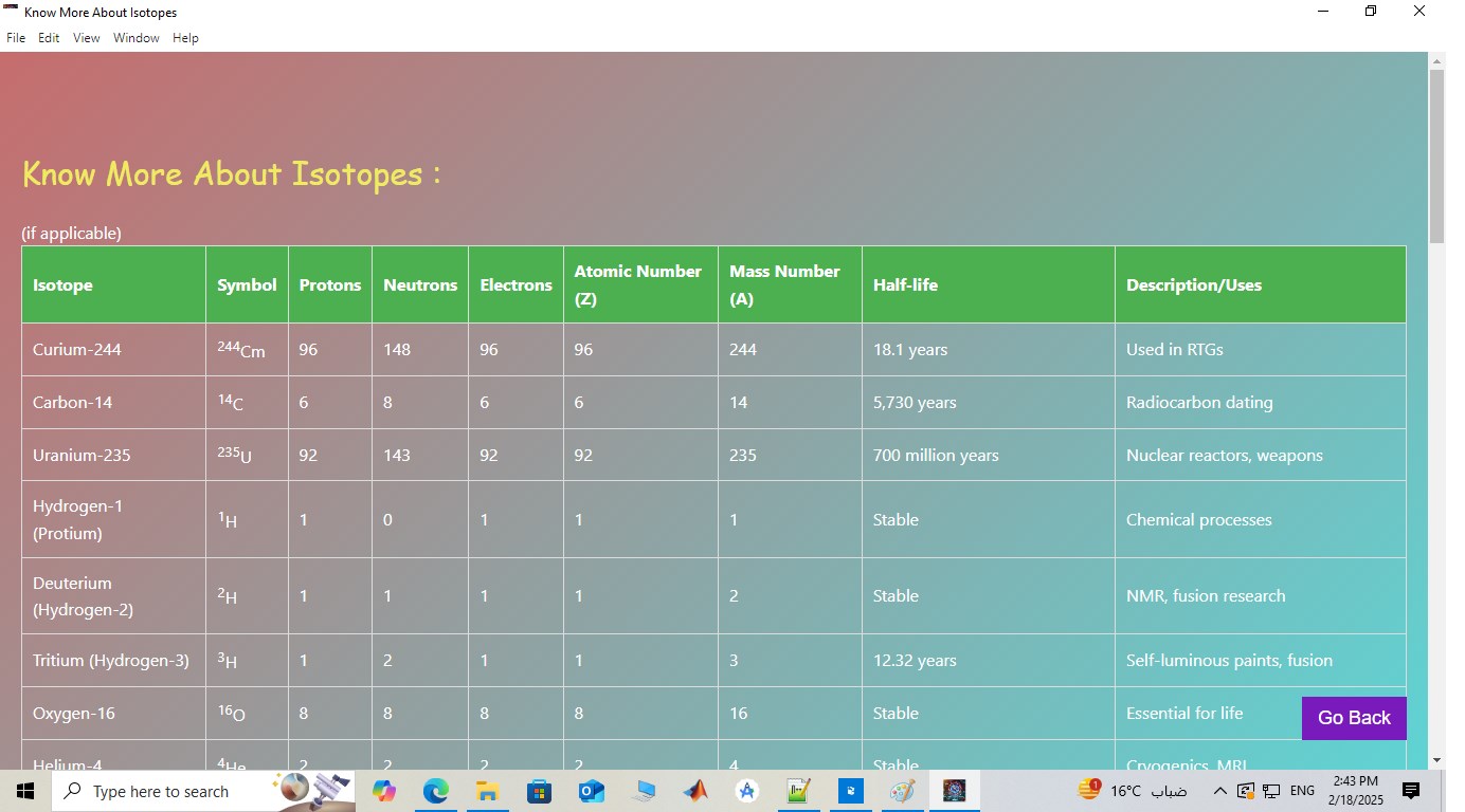 sotope Insight 3D is an advanced tool for exploring isotopes and their properties. It provides detailed information and interactive 3D visualizations to enhance the understanding of different isotopes. Designed for offline use, it ensures accessibility even without an internet connection, Short Articles & Isotopes info table for Radiogenic & Stable.