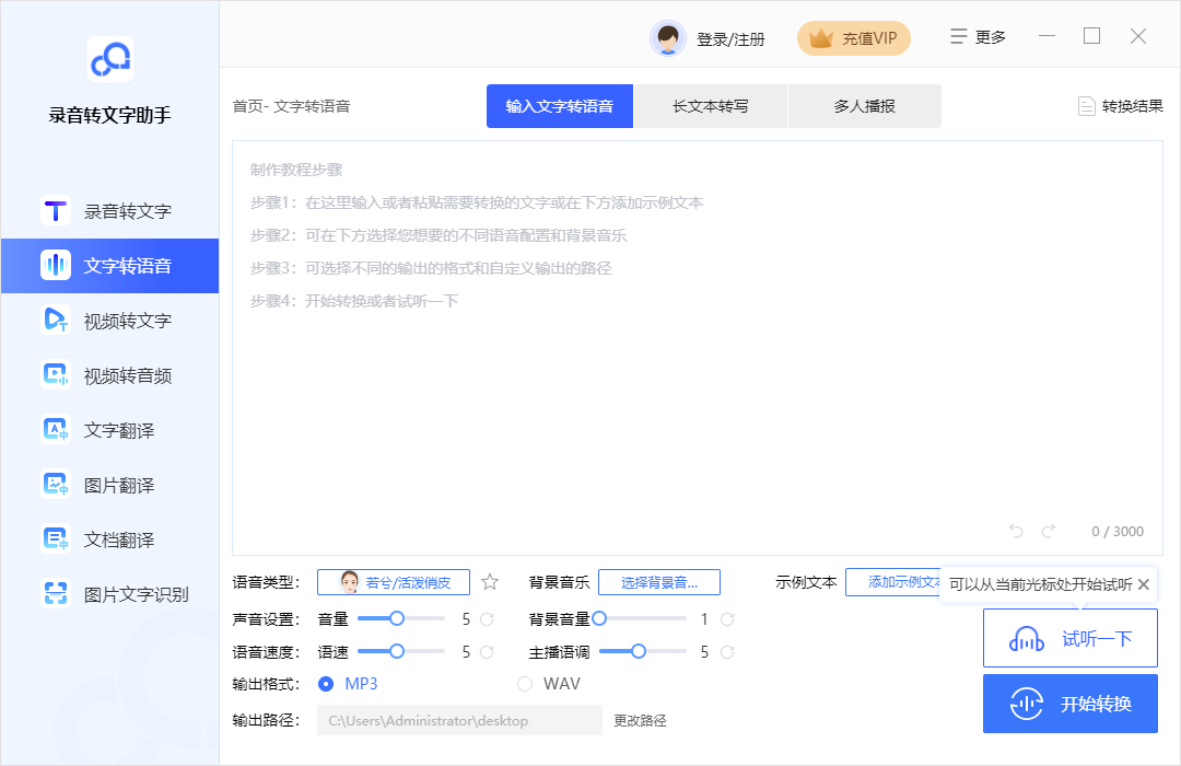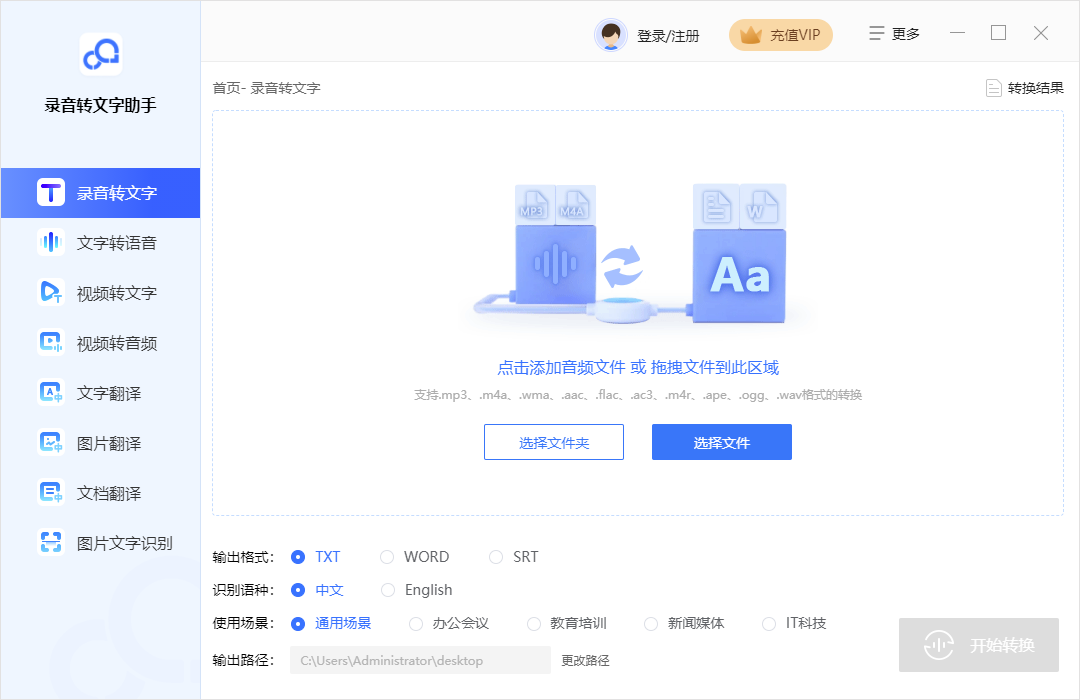 录音转文字视频转文字视频转音频文字翻译图片翻译文档翻译图片文字识别
