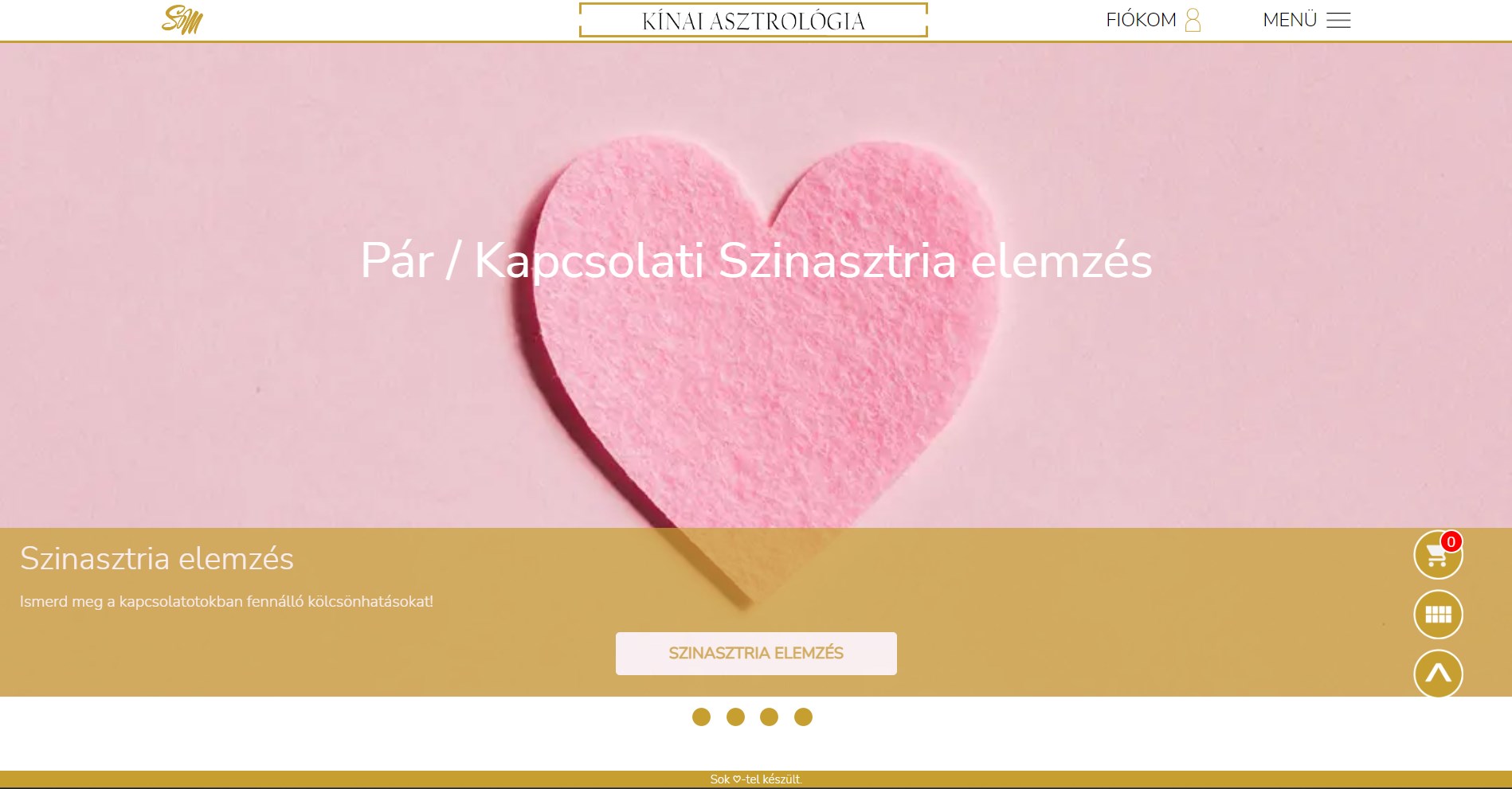 Megkaphatod online elemzésedet e-könyv formájában, amely tartalmazza személyiségtípusodat, rávilágít a helyes életútra és önismeretre. Ha nehéz döntések előtt állsz, életed válaszút elé került. A világ első kínai asztrológia oldala, ami online elemzést készít - Kínai asztrológia kalkulátor Ha választ szeretnél arra, hogy mi mindent tud Rólad a Kínai asztrológia, helyezz bátran e-könyvet a kosaradba, vagy válassz a jóval kedvezőbb áron elérhető csomagokból, melyek az e-könyvek alatt találhatóak! Ajánlatos az első e-könyvvel kezdeni, Az Önelemeddel (ezt az e-könyvet minden csomagom tartalmazza), melyben a következőkre kaphatsz választ: Mi az Önelemed? Milyen ember vagy valójában? Nem csak a Kínai Asztrológia 4 oszlopos sorsfejtés rendszere által jelzett Önelemedre csodálkozhatsz rá, ennél sokkal több van benne! A Teljes elemzés csomagban megkaphatsz minden információt, amit csak a Kínai asztrológia segítségével összegyűjthetsz magadról. Ez a legkedvezőbb árú csomagom, minden e-könyvet tartalmaz. Komplett elemzés több száz oldalon csakis Rólad! Lehetőséged van Személyes mentorálásra is, ennek lehetőségeiről a Konzultáció oldalon olvashatsz. Örömmel tájékoztatlak, hogy elérhető már a Szinasztria elemzés is az oldalamon! A szinasztria elemzés, amikor 2 ember születési képletét összevetjük, s a képletek közötti kölcsönhatásokat értelmezve tudjuk vizsgálni a két személy lelki, szellemi, egyéb vonatkozású összeillőségét. Ezzel a módszerrel a 2 személy születési horoszkópját, vagyis 2 radixot vetünk össze, s azok között keressük a kínai asztrológiában megfogalmazott konstellációkat. Kedvet érzel, hogy teljesebben megértsd a pároddal, gyermekeddel, ismerőseiddel megélt kapcsolatot, szeretnéd megérteni miért vált ki belőled a másik személye bizonyos reakciókat? A legújabb Szinasztria elemzés e-könyv a köztetek fennálló kölcsönhatásokon keresztül nyújt segítséget a megértéshez. Kezdd meg az Önismereti utadat!