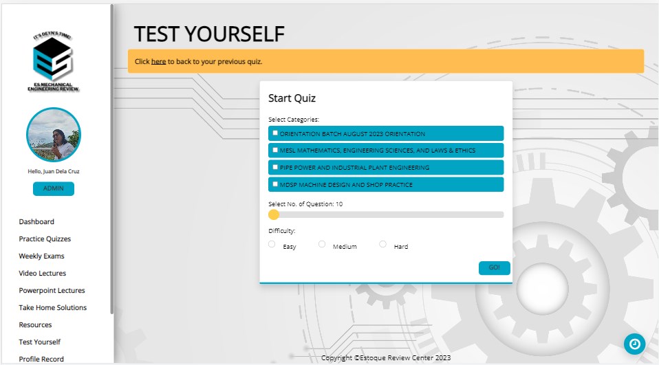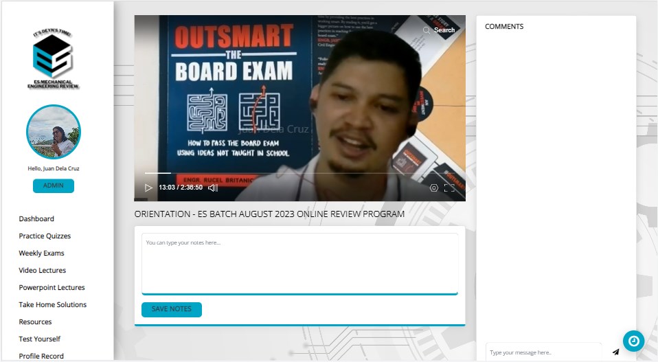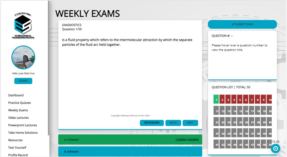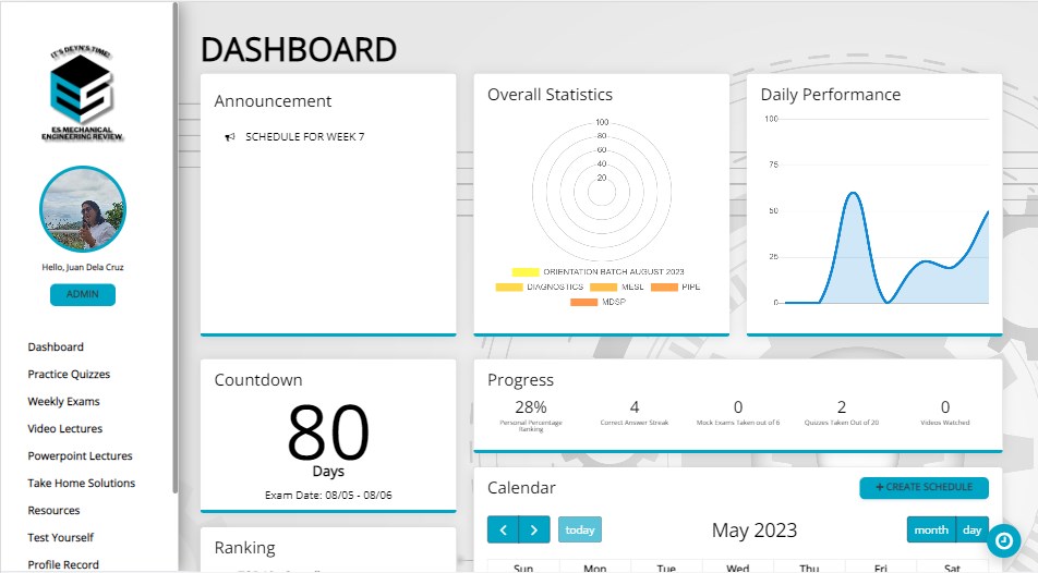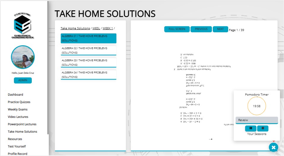 Dashboard This feature is designed to give you an overview of your tasks, schedule, class standing and announcements. Dashboard allows you to gain a summary of your learning journey.Practice Quizzes Answer bite-sized quizzes to assist you in answering larger scales of tests. Weekly exams Integrate mockboard types of quizzes into your review journey to help you warm-up and prepare for the real tests. Video Lectures Access your instructors\’ recorded teaching per subject with high-end classroom technology – giving you a frontrow seat experience. Powerpoint Lectures Download the powerpoint slides provided by your lecturers, accessible anywhere.Take Home Solutions Sharpen your knowledge through these PDF-type assignments. Resources Acquire a library of lessons created by your instructors. Maximize these resources at your best, and exhaust every lesson for your own sake.Test Yourself Challenge your knowledge with this feature by answering a set of questions, designed with immediately knowing whether you got the right answer or not.Profile Record Gain an overall look of your activity logs – with the quizzes you took, your scores and the time you spent on answering each of them. Live Discussions Experience a virtual classroom and be ready to interact with your instructors and review classmates through our upgrade interactive features.