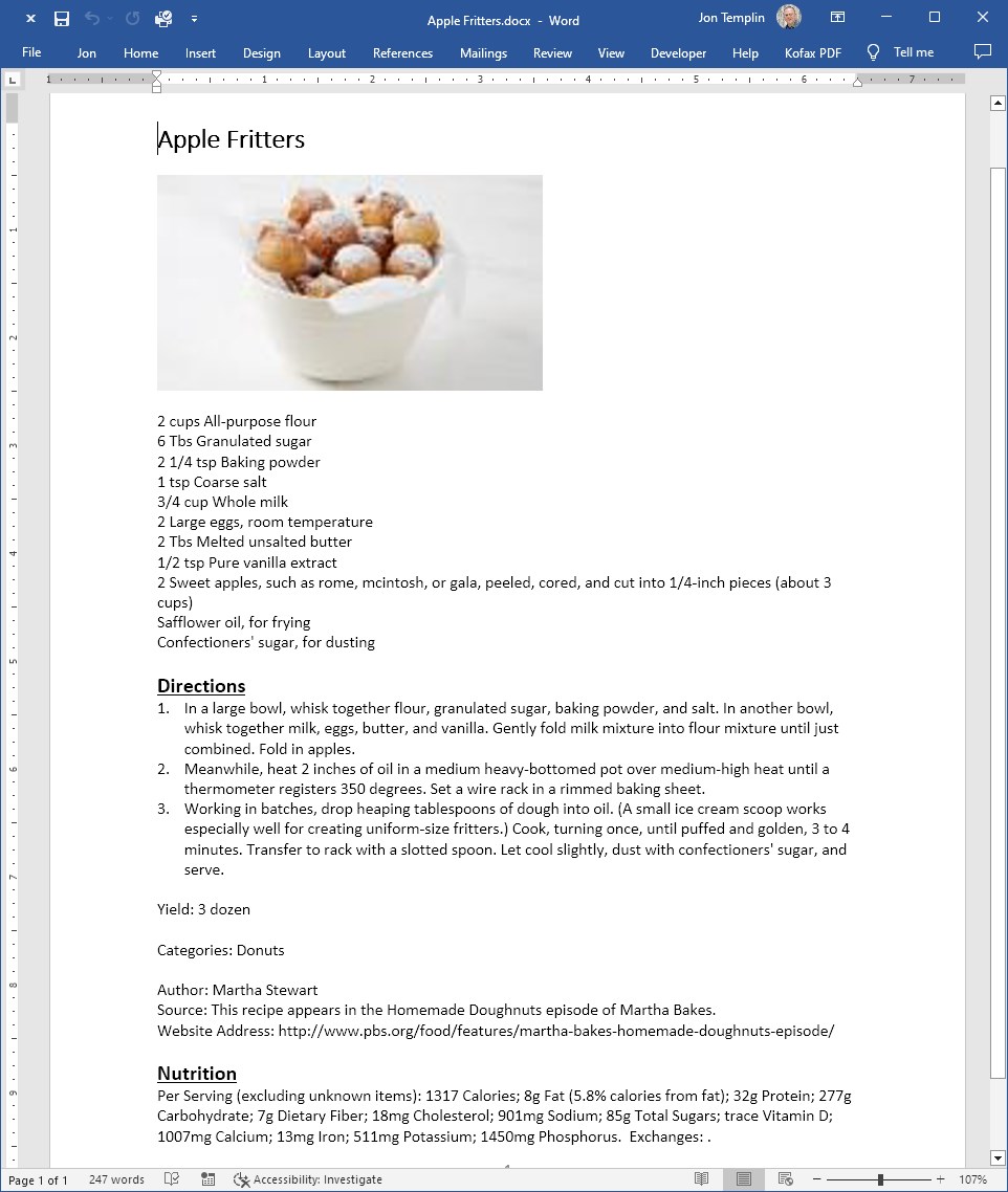 Using the combine option, you can have all the recipes in all the files you dropped combined and alphabetized into a single Word document.