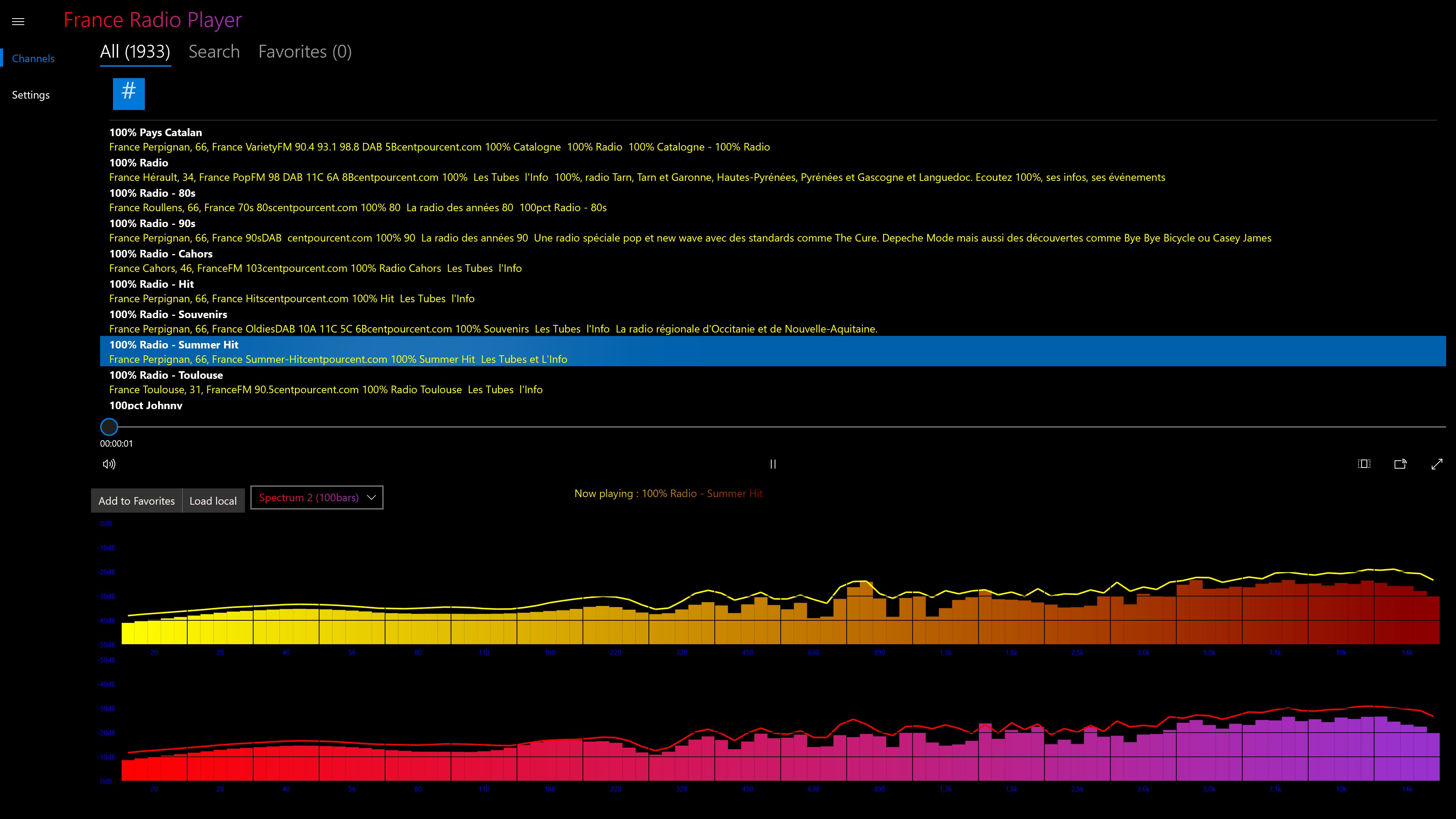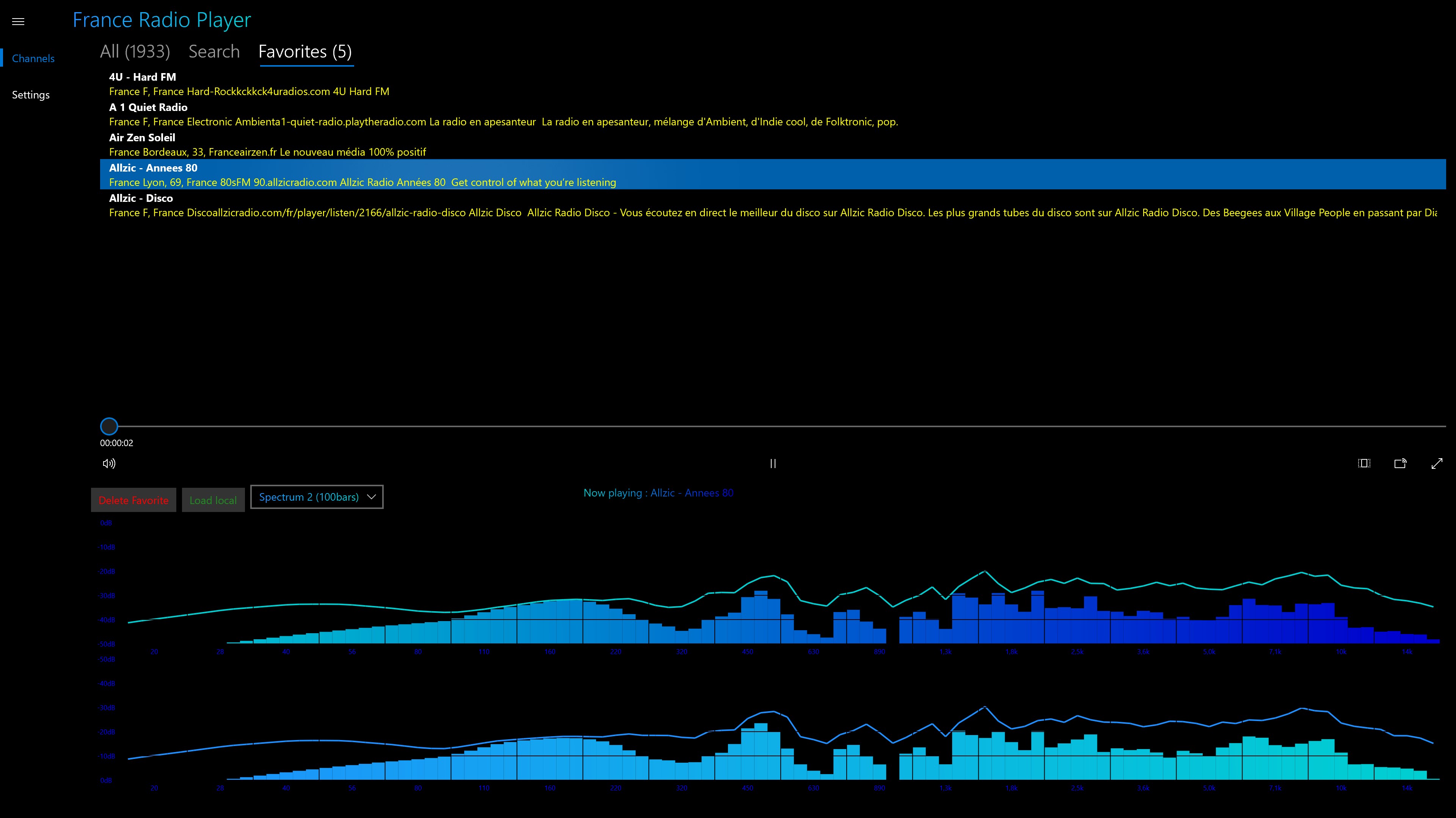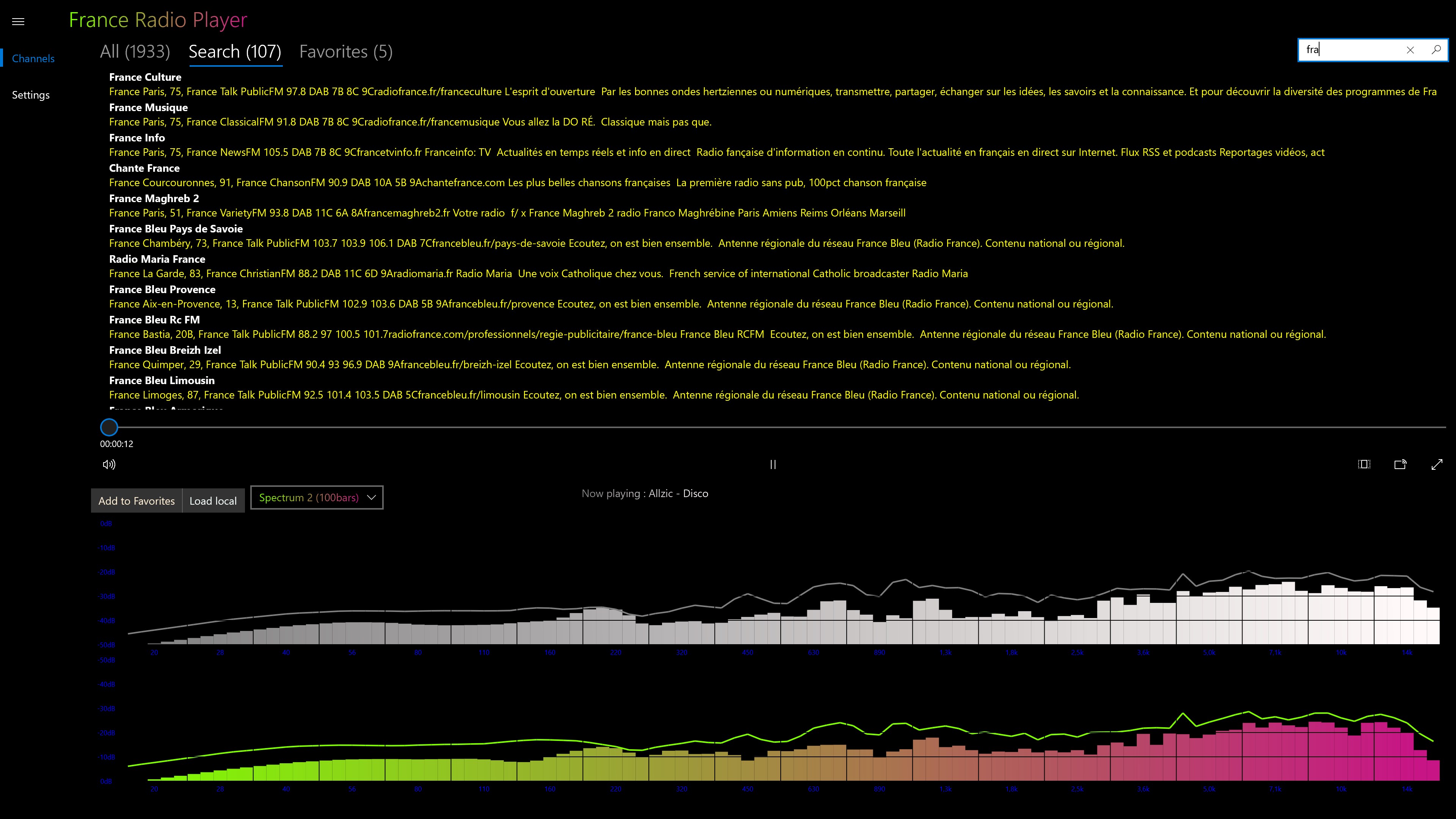 Search stations and/or add to Favorites List. Customize under Settings Audio Spectrum Analyzer.