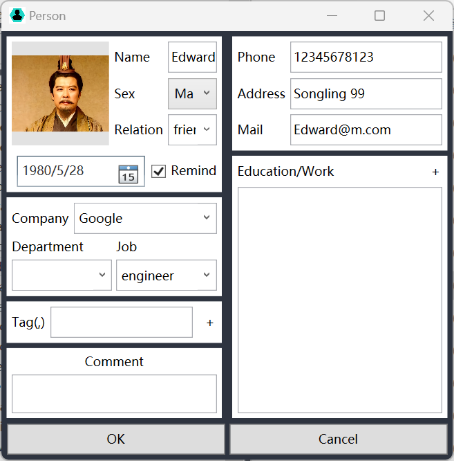 You can set the organization, relationship, label, and education experience of the contact.