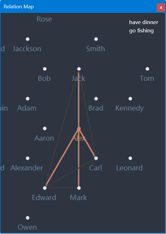 The app is used to manage contacts and events and display them in a relationship graph.