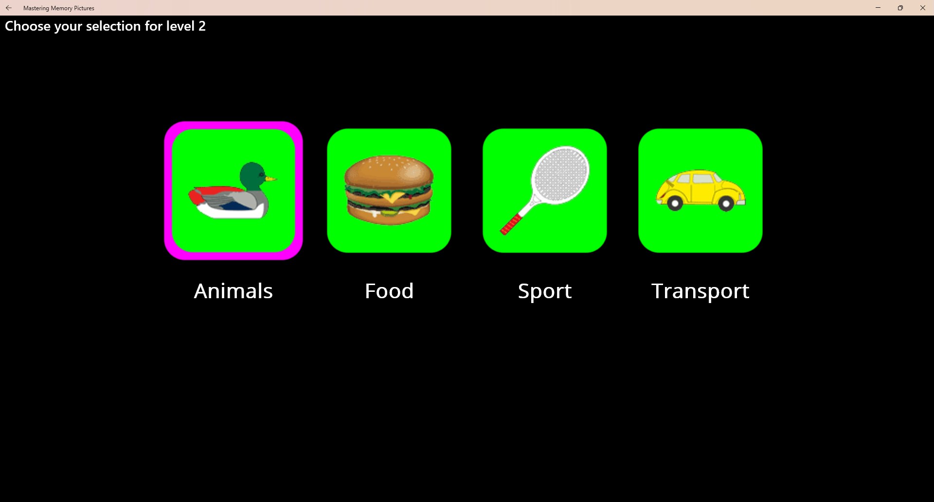 Mastering Memory Pictures is suitable for children from 2 years to 11 years old. It includes images of animals, food, transport, sport and other items.