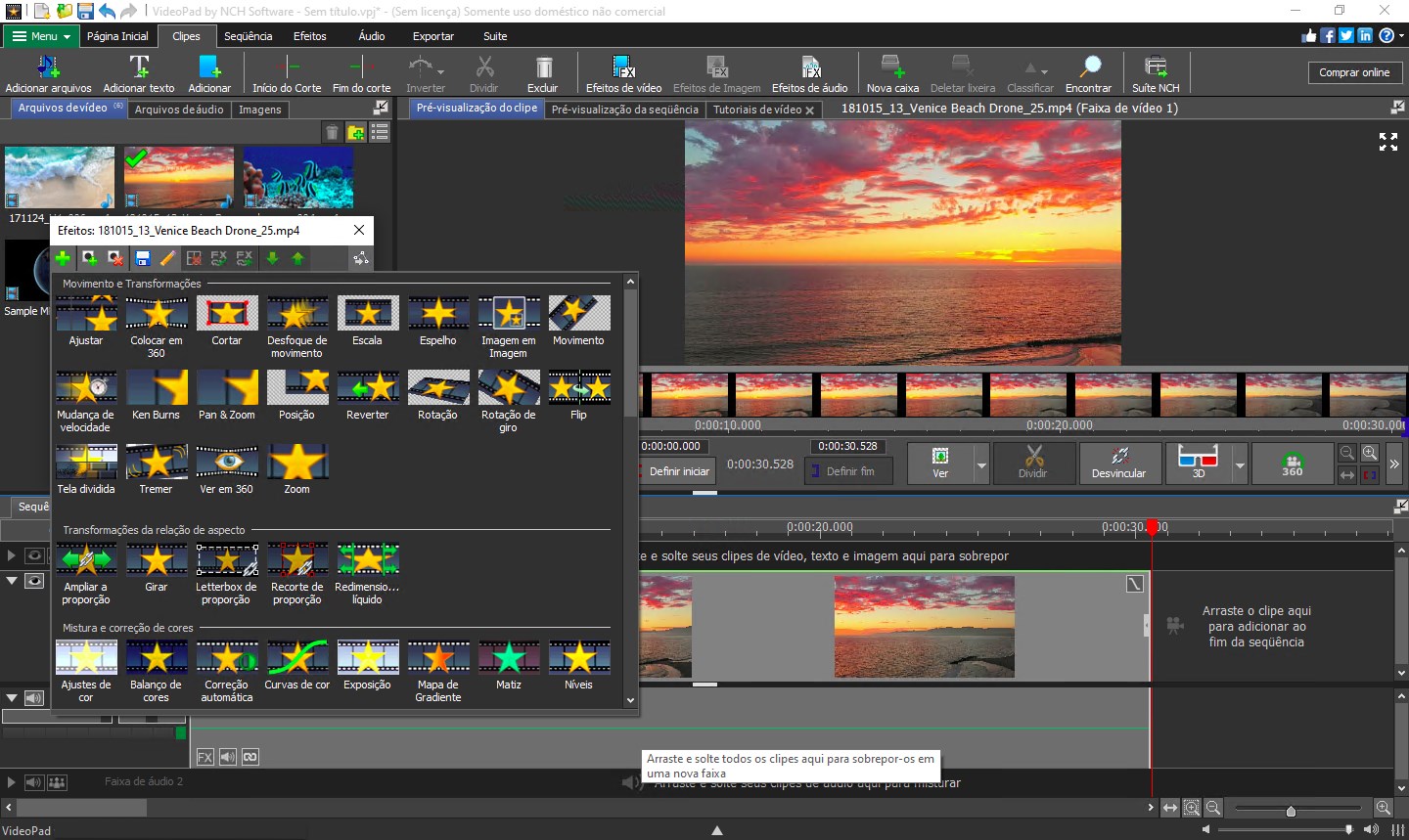 VideoPad é um editor de vídeo e criador de filmes poderoso e profissional. Com sua interface intuitiva, você estará criando em minutos. Simplesmente arraste e solte seus arquivos de vídeo, áudio e imagem na linha do tempo ou grave seu áudio e vídeo do zero com VideoPad.