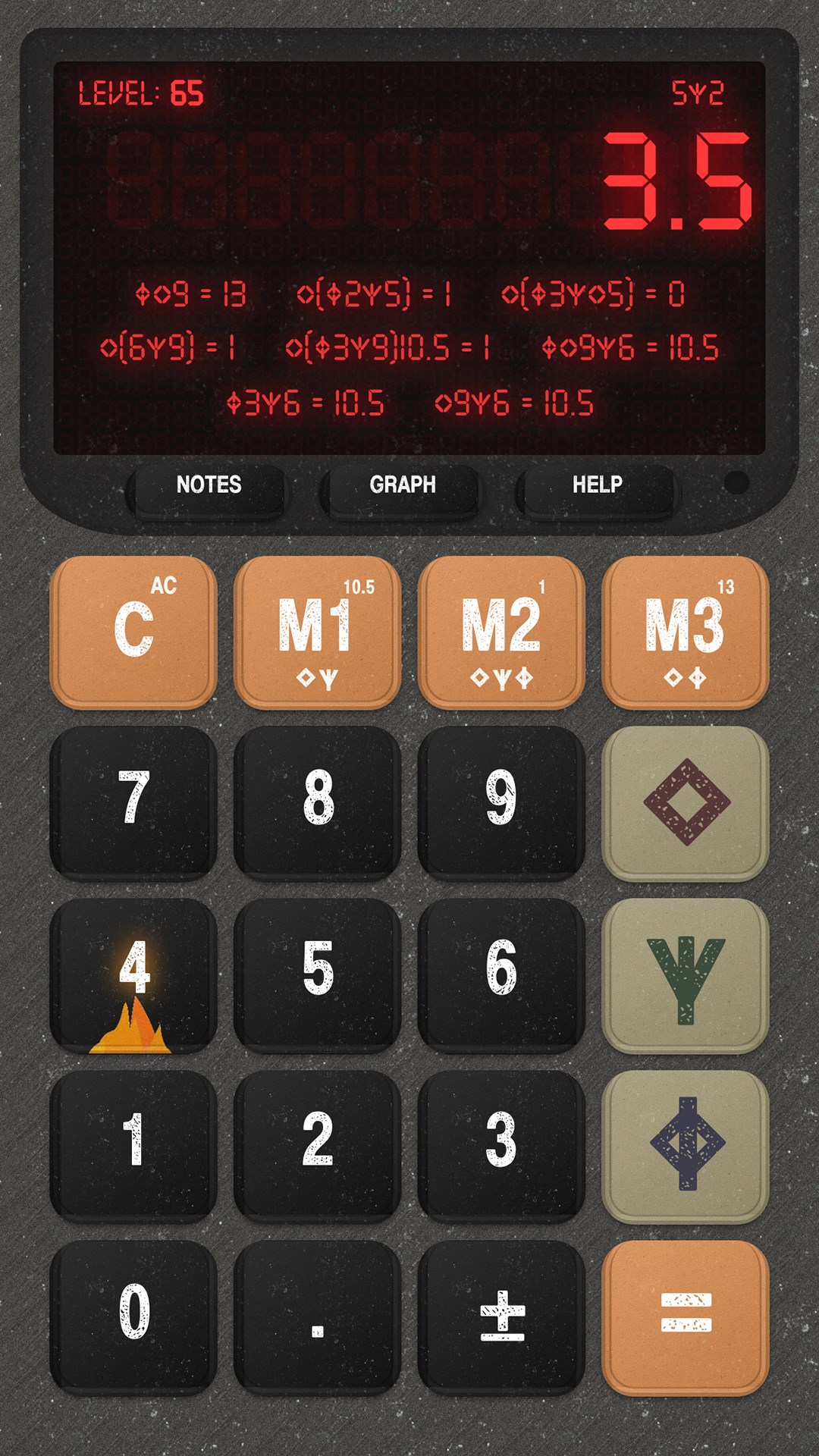 An evil calculator has its normal arithmetic operators replaced with sadistically obscure functions. Based on machine learning concepts, players interpolate these functions using sophisticated logic and reverse engineering. Rather than the typical scenario of "solving for X" in algebra, the operators themselves are a mystery. To calculate your perpetual goal of 666, you must strategically collect data and recognize patterns in the output of the calculator. Advanced graphing mechanics and deep integration with professional tools such as Wolfram and Weka help you in your journey and make the experience accessible, not mathematically erudite. An in-depth level creation system for sharing with the online community guarantees hours of challenging and rewarding gameplay well after the main campaign.