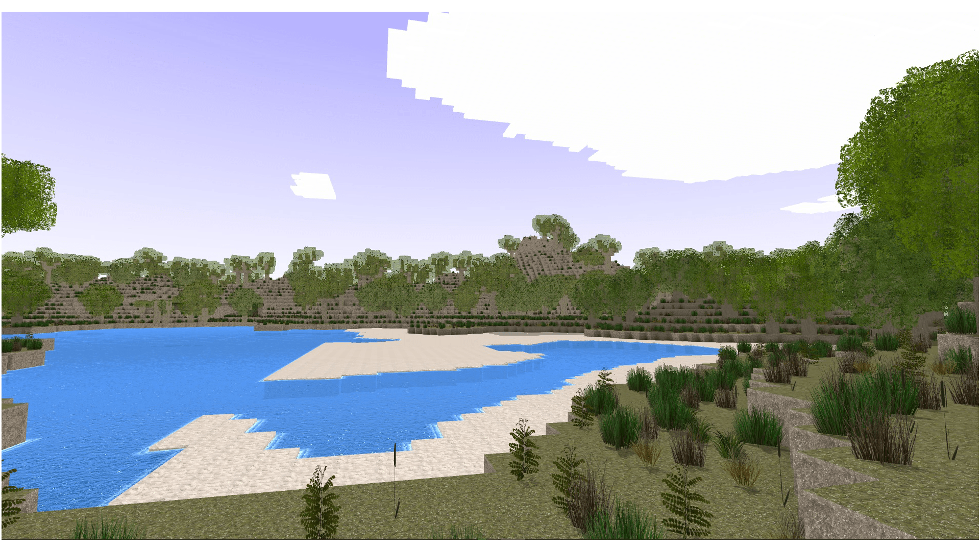 - Advanced materials with normals, displacement, shaders, shifting grass, removing tiling effect and adding additional 3D noises for sand and stones.