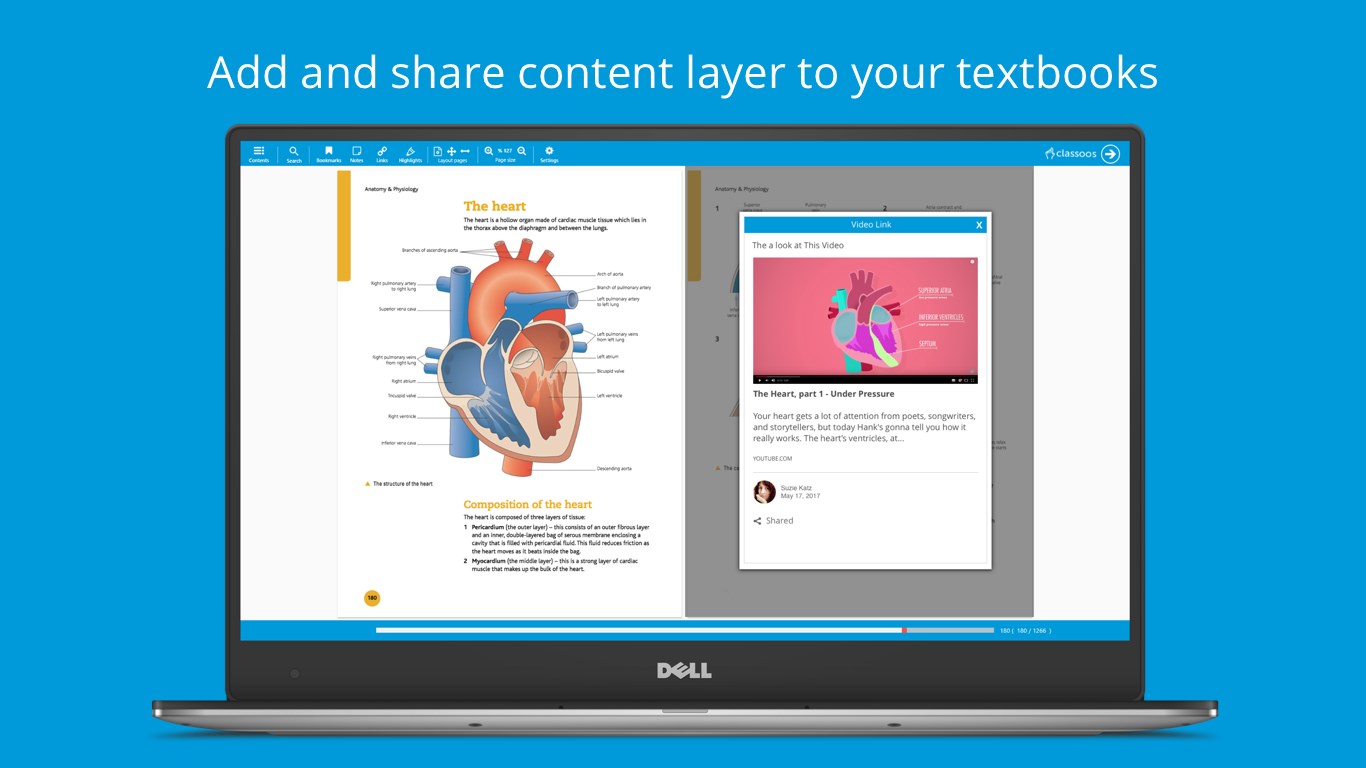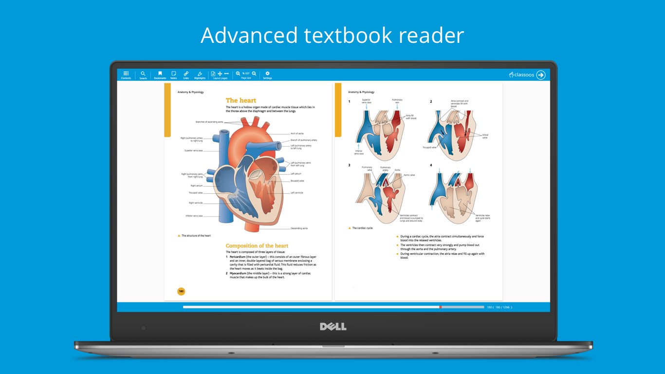 Classoos is a digital textbook service and learning resources platform, allowing teachers & students to enhance textbooks and distribute learning materials. Classoos has distribution arrangements with a growing list of international textbook publishers such as Pearson, Hodder, Cambridge, and many others to feature their content on the service. At the moment Classoos is only available to schools.