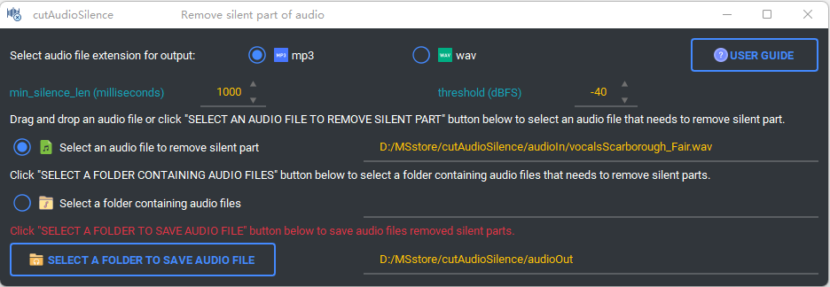 User guide for "cutAudioSilence"