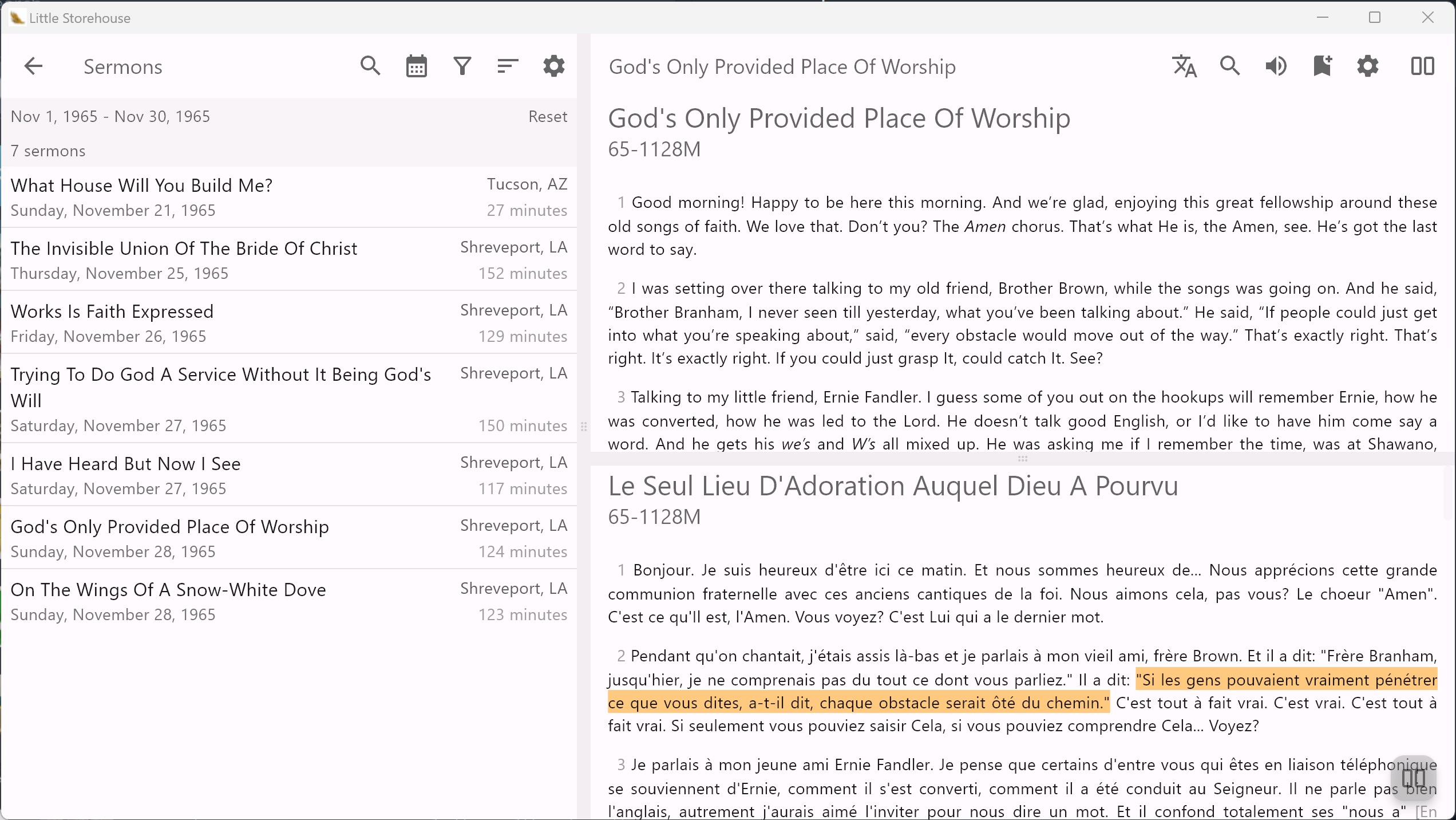 Switch languages seamlessly in Highlights, Search, and Sermons List pages.