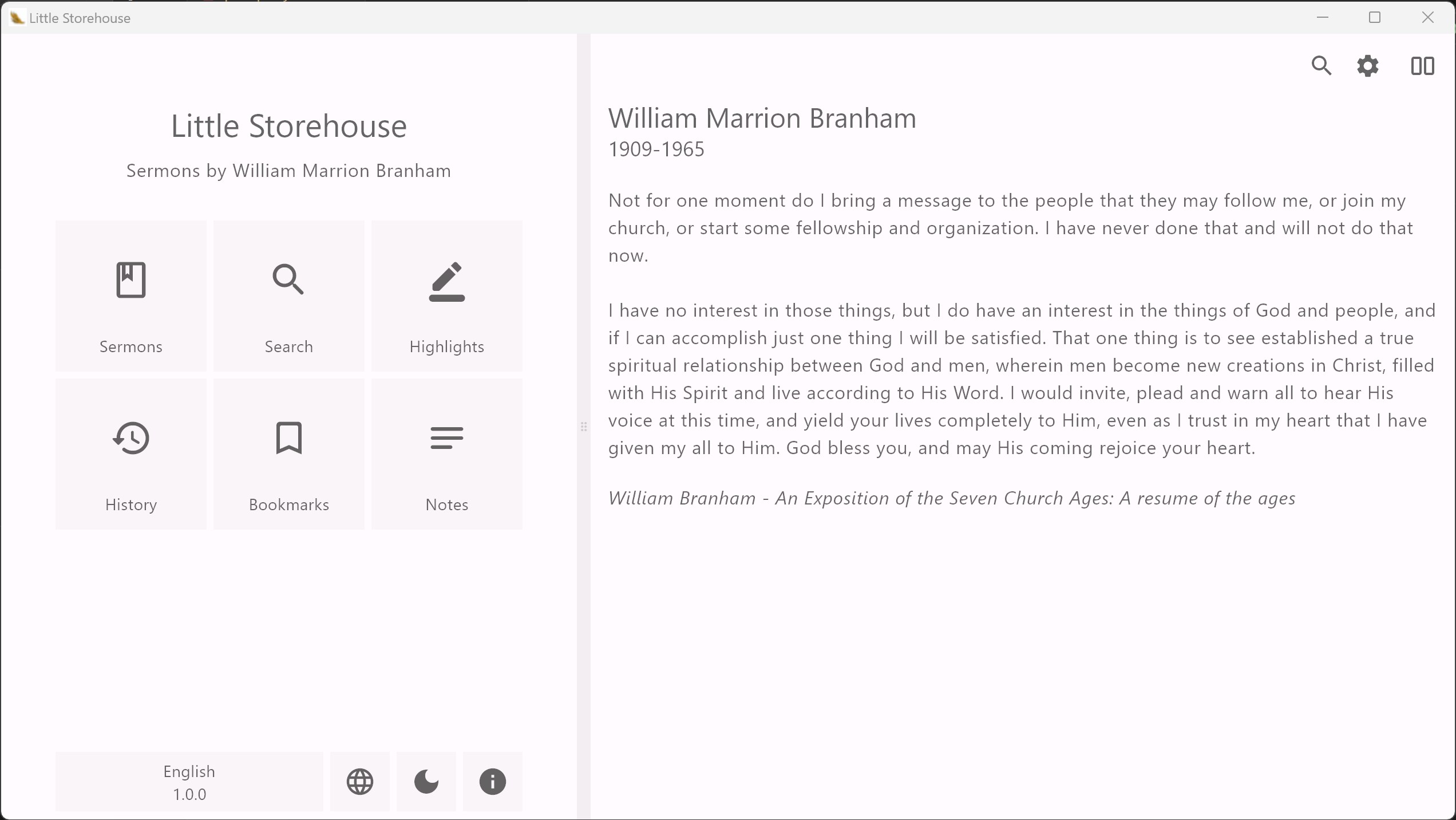 Little Storehouse is a collection of sermons by William Marrion Branham in various languages.