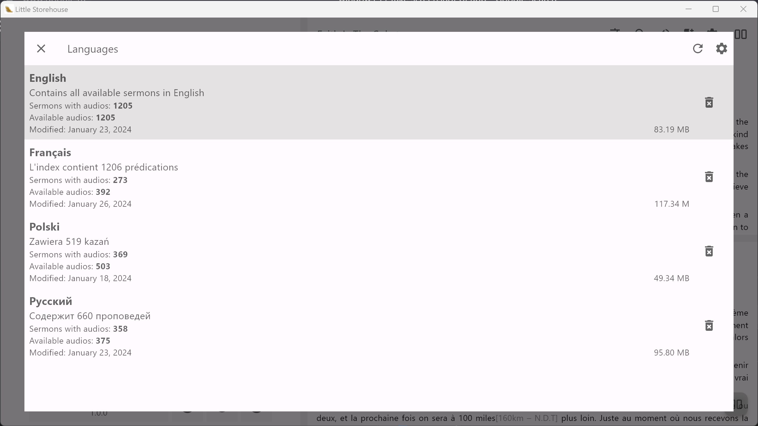 Download sermons in additional languages for offline using.