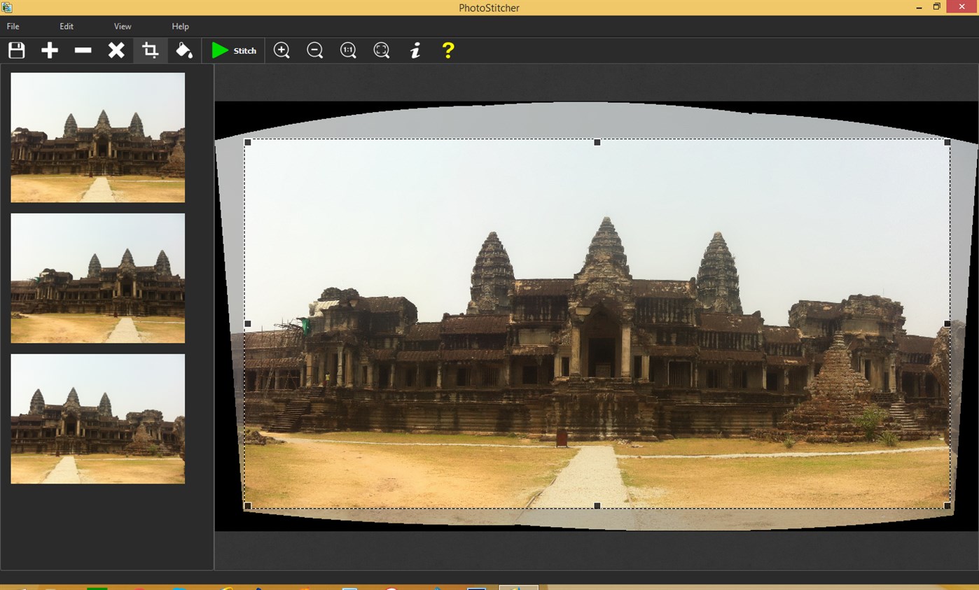 Making a really nice panoramic photo of a city usually requires a wide-angle camera. Typical non-professional lenses simply cannot capture the entire view in one frame. However if you aren't a lucky owner of a professional camera and photographic skills you still can create perfect panoramas from scattered images of the same place. PhotoStitcher automatically aligns individual pictures stitching them one by one into an eye-catching professionally-looking panorama!
