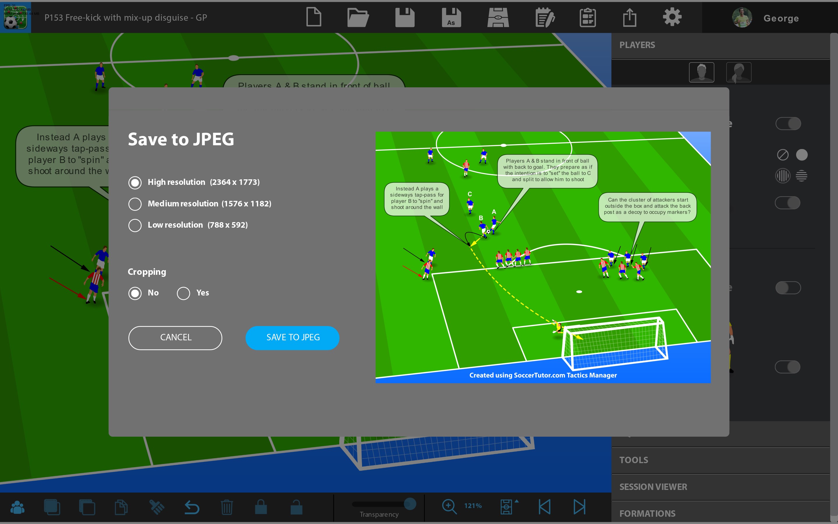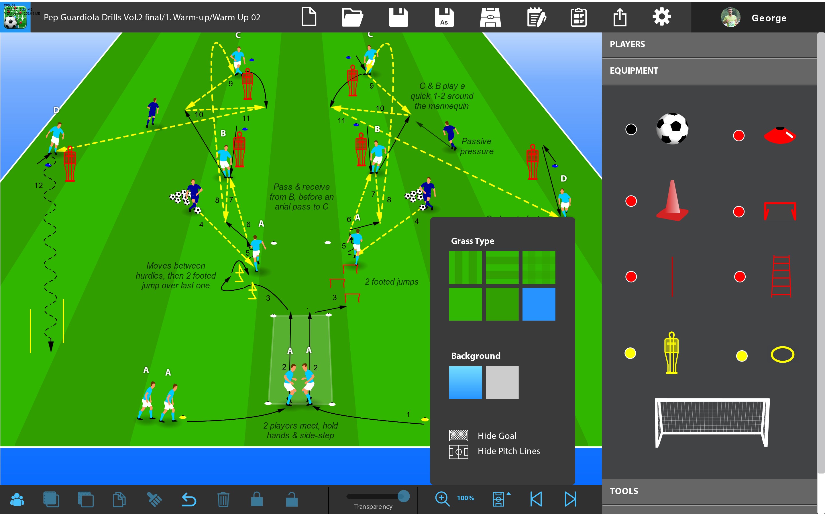 43 Pitch Planning Angles128 Players Actions160 Goalkeeper ActionsEquipment (practices and conditioning)Line ToolsPitch Options and Zoom in / OutSave Drills & Sessions to PDFAdd Training and Match NotesYour Coach Info Included with PDF\'sSave Diagrams to JPEGCopy, Paste, Undo... Super Quick!Group + Layer objectsSquare and Circle Highlighter ToolsText and Speech Bubble ToolLock and Unlock ObjectsEasy file and folder managementMultiple Languages