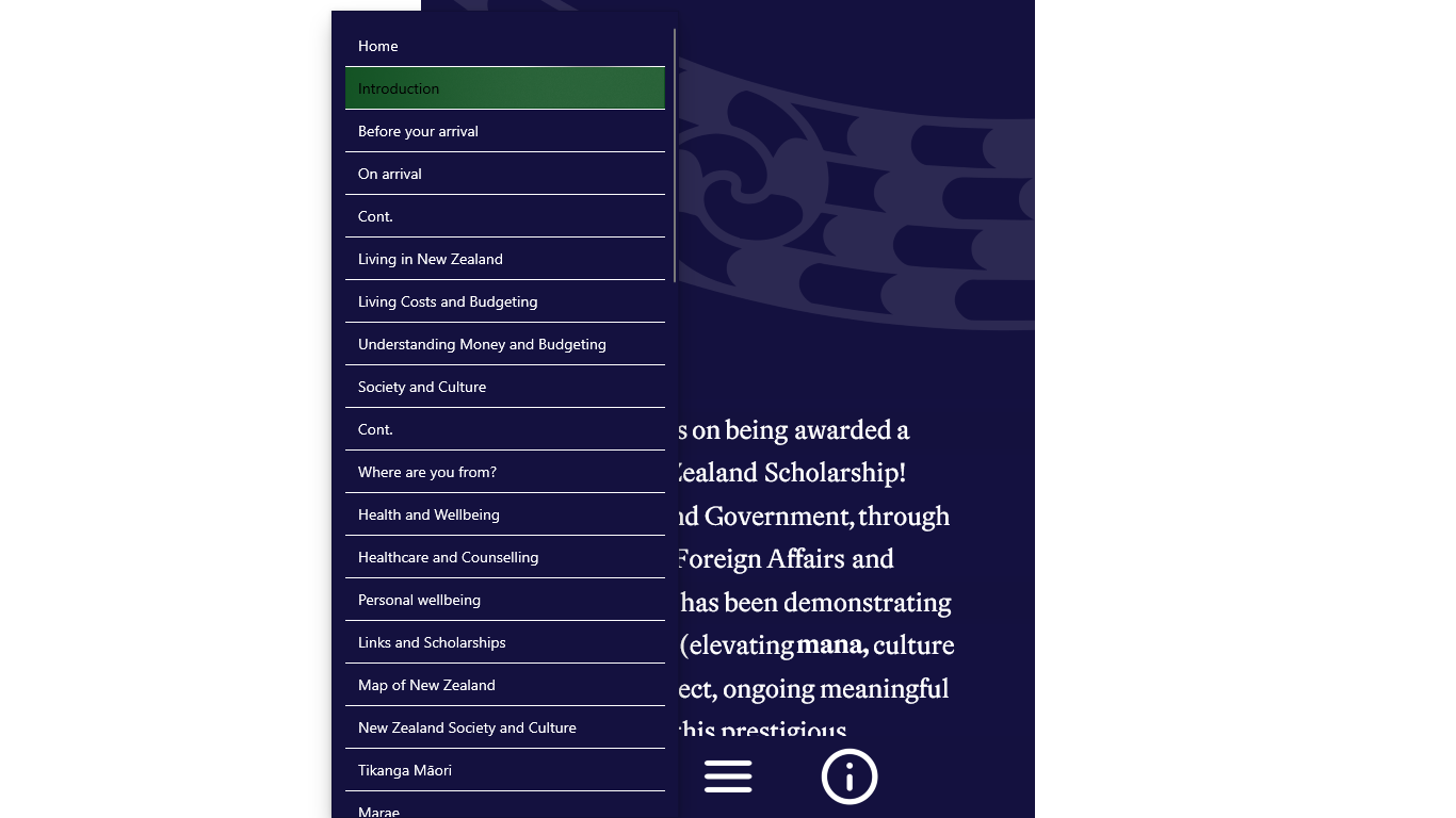 On this app you will find information you need prior to your arrival and studies, including guidance on New Zealand society, Māori culture, customs, protocols, health and wellbeing, and useful community connections.