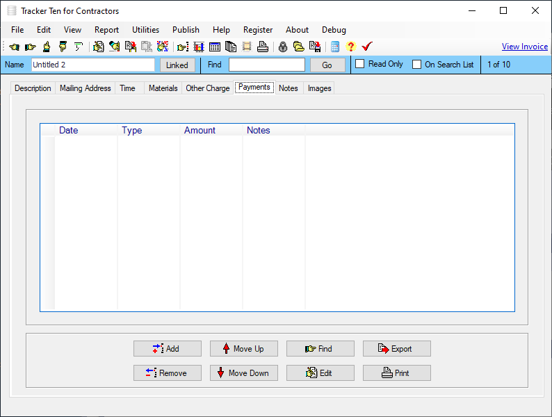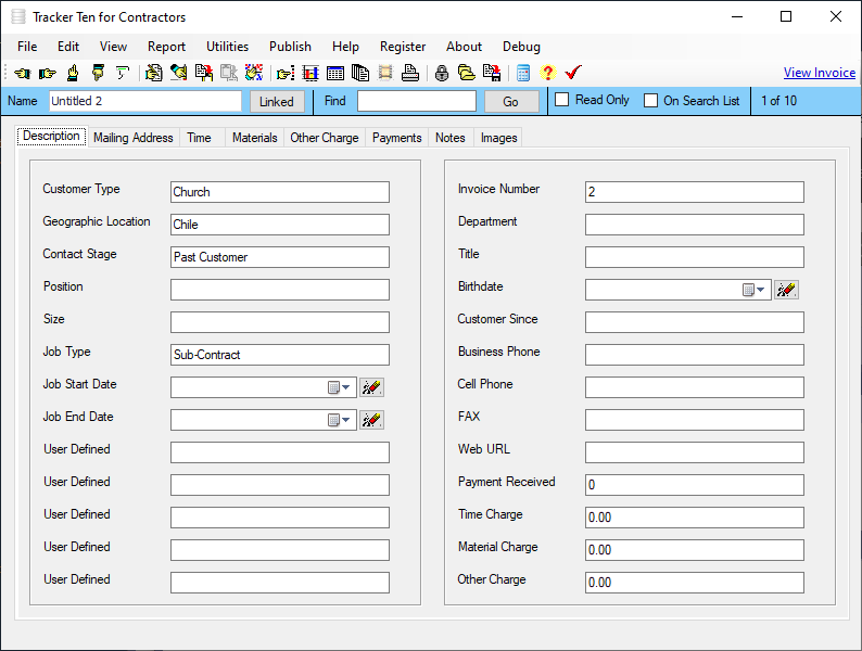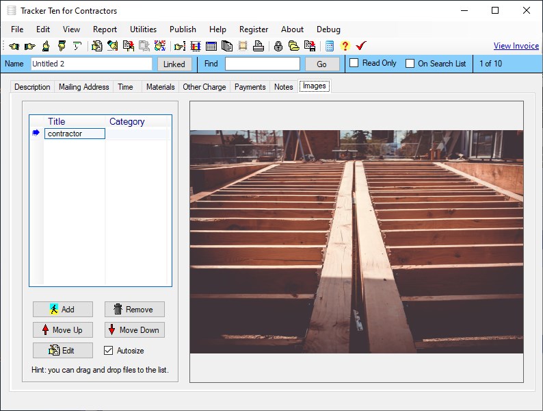 Tracker Ten for Contractors is an all in one software solution that trackes your jobs, manages your customers and generates invoices. The software can track up to 10,000 jobs in a single databases file and you can create an unlimited number of files. For each job you can track work details, material and supply used, labor time, other charges, customer information, payment history, reminders, pictures, external files, employees assigned and much more. The software also automatically generates invoices, calculates taxes and figures out total job charges. A variety of reports are available that show financial information, job details and customer history. The software features graph generation, data export, bulk email, mailing label generation, a powerful search engine, full customization and much more.