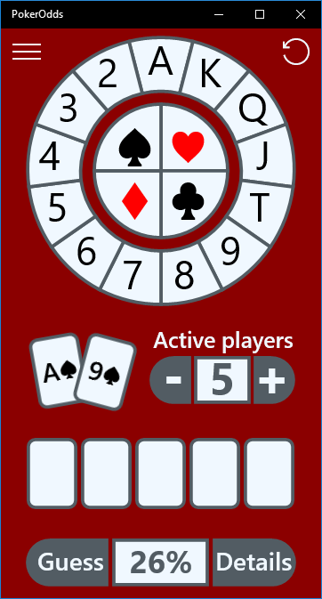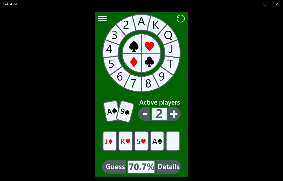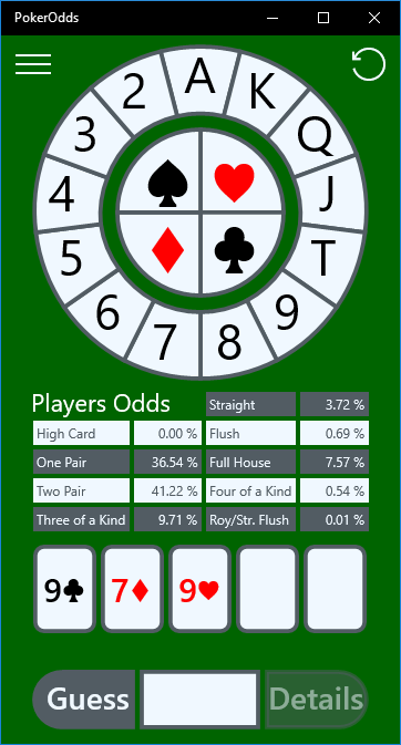 More details on the results are visible on the Details page, like opponent odds or odds for a specific hand's rank.