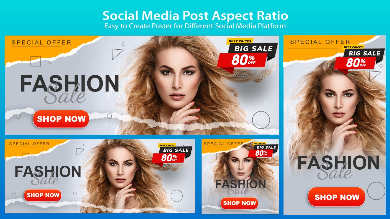 Poster Maker, Flyer Designer, Ads Page Designer, Banner Maker is an app specifically for efficiently designing posters, banners, flyers and cards. With one click, you can select perfectly scaled sizing for your poster, so you don't have to hassle with resizing an image.