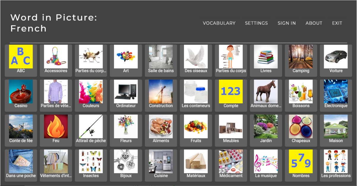 Pass the tests, correctly identifying the names of the images in French and the correspondence of the images to their names.
