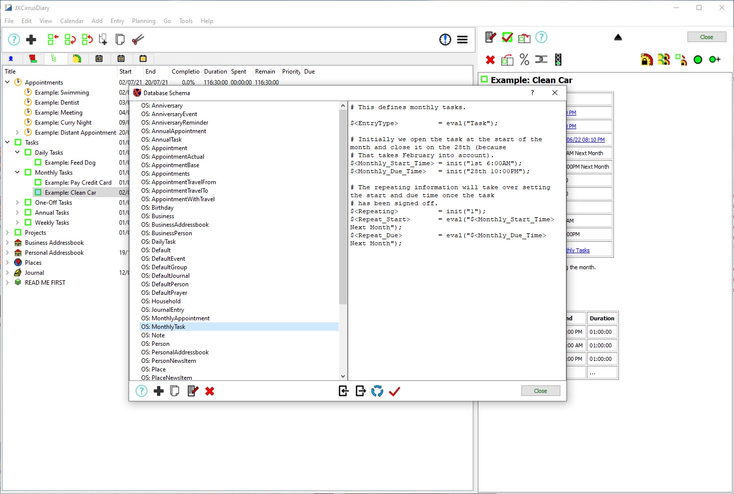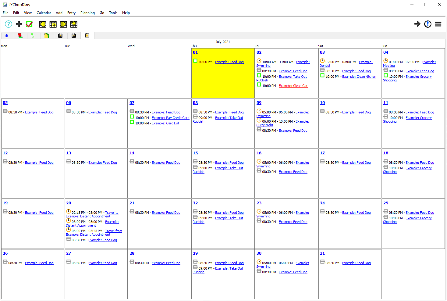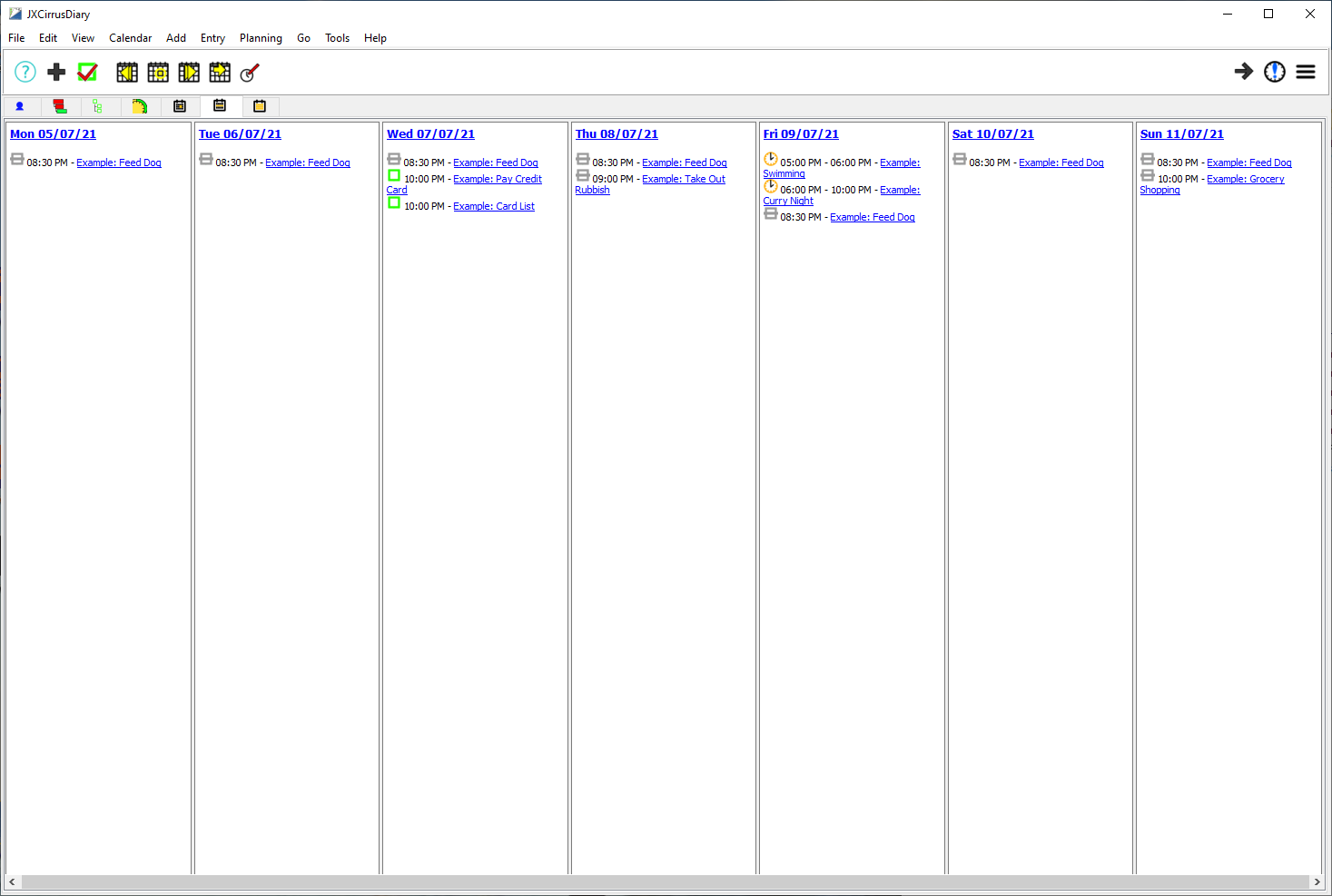At its most basic, JXCirrus Diary is a combination of calendar, to-do list, addressbook and journal. You can enter your list of jobs for the week, and tick them off as you finish them. It is nice and quick to enter the information, and JXCirrus Diary will warn you when tasks or appointments are due. But hidden under the surface are some far more powerful features...