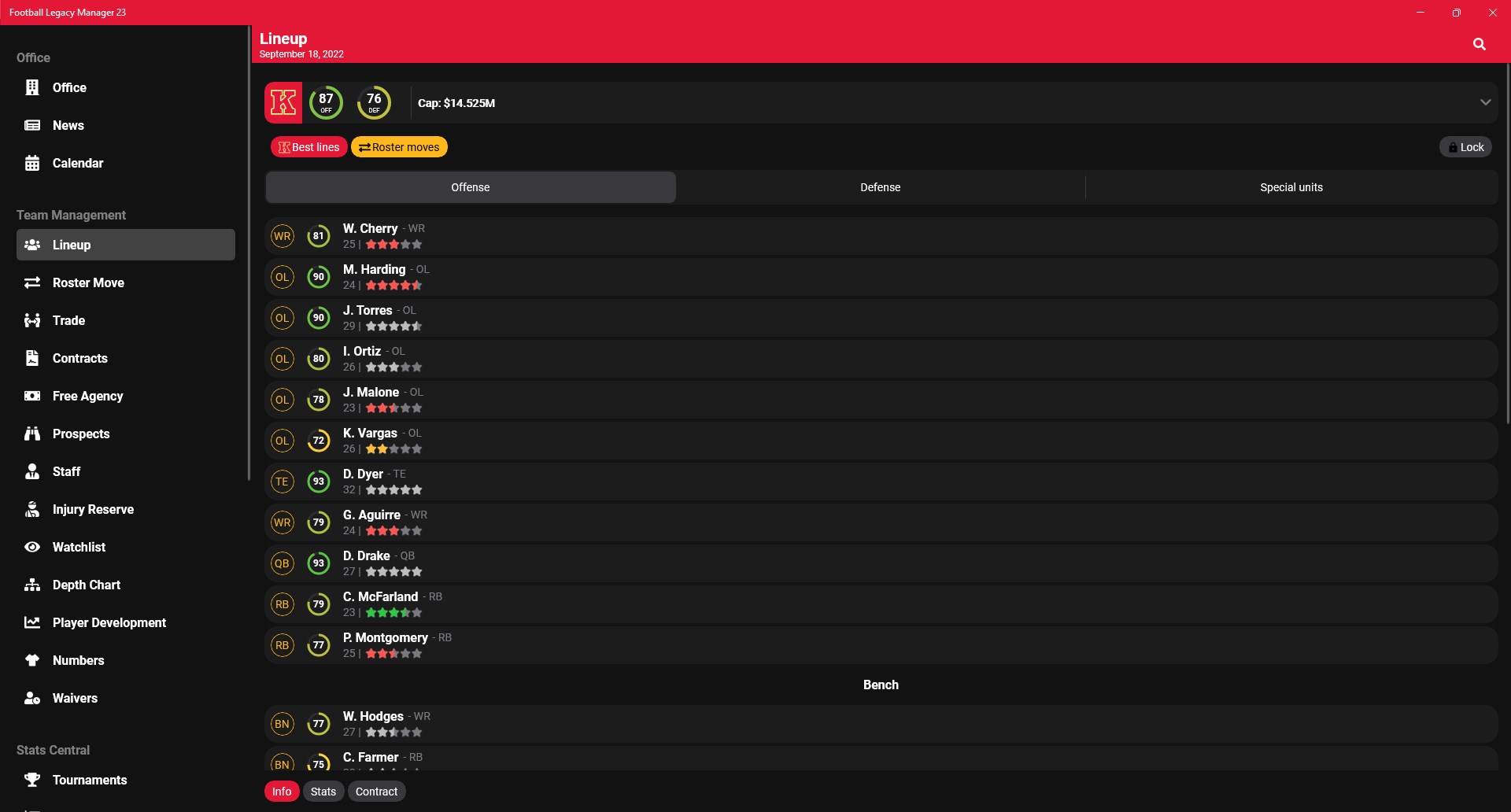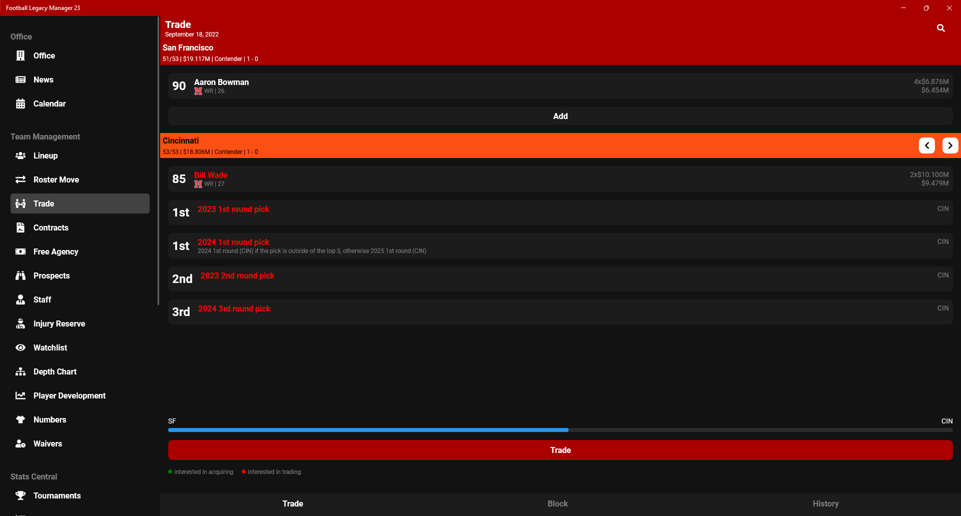 Football Legacy Manager 23 (FLM23) is the ultimate mobile American football manager experience. Manage all aspects of your American football team to create the ultimate legacy. Coaches, scouts, drafting, trading, contract negotiations, player development, all this will help you dominate the league for decades.