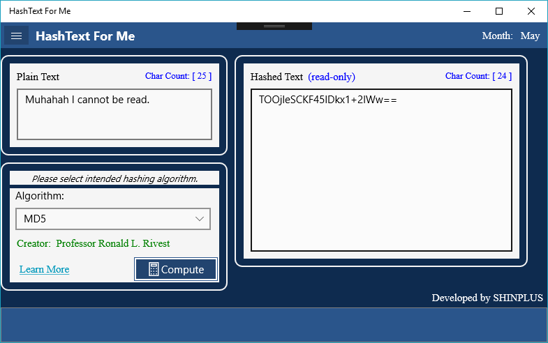 The purpose of this application is to aid users who uses hashing function in their job or assignments especially for those who handles back-end data. It is a tool that you can be used it when you need to most.