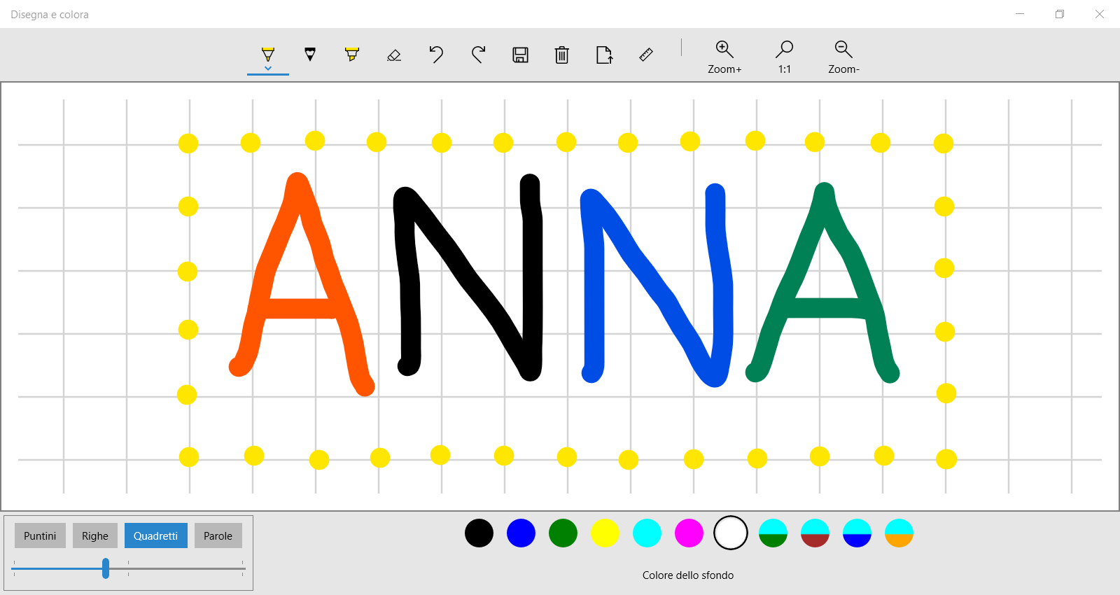 Si possono visualizzare linee, punti e quadretti per guidare la scrittura a mano libera.