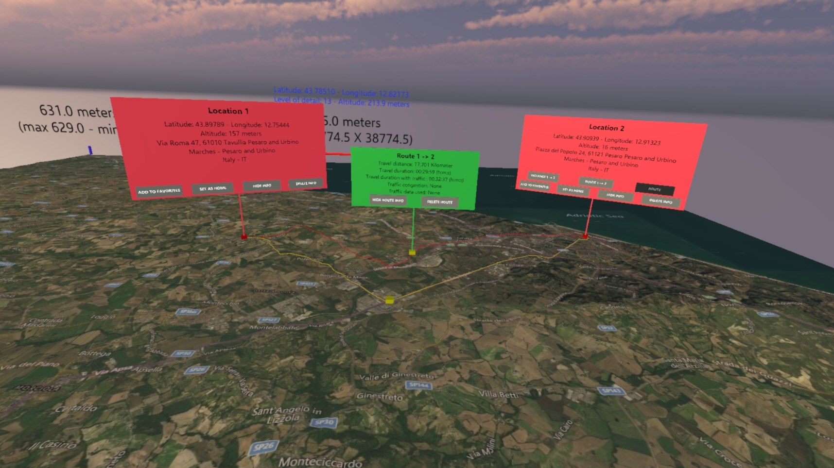 With Easy Map 3D installed on your PC, you can view street and satellite 3D maps of the whole world (Bing Maps, OpenStreetMap and Mapbox). You can move around, widen, narrow, zoom in and out on the map using the controllers. The application automatically enlarges the map when you approach an edge. You can do custom searches based on the name of a location or selecting a point on the map of the world ("Globe"). Favorites manager and distance measurement between points on the map. Route calculation ( get a walking, driving or transit route by specifying a series of waypoints). GPX file visualization. OpenSnowMap and WaymarkedTrails data visualization on every available map. RealEarth data (https://realearth.ssec.wisc.edu/) visualization on the globe. Export the model of the map and view it with 3D Viewer (https://www.remix3d.com/user/3ddp-XCHx35?section=models).