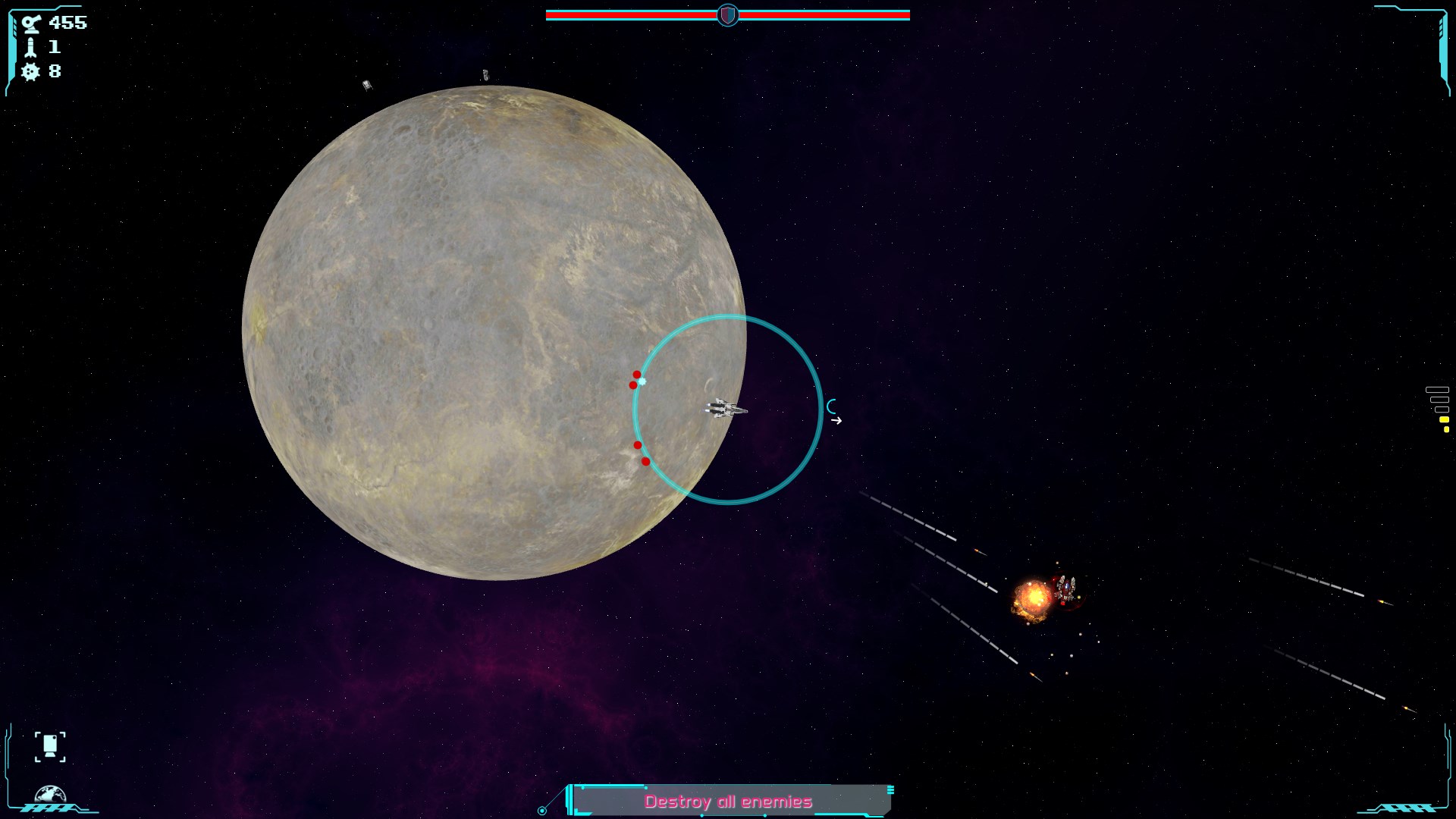 In the 25th century, humanity has expanded throughout the universe, we are in a commercial port of a distant colony planet, after a solitary and peaceful expansion there is a first encounter, unknown ships have appeared and attack the trading port, you must defend it with available artillery and attack the invading allies with your fighter ships. Maintaining trade is key for the colony so you must also protect the cargo ship.