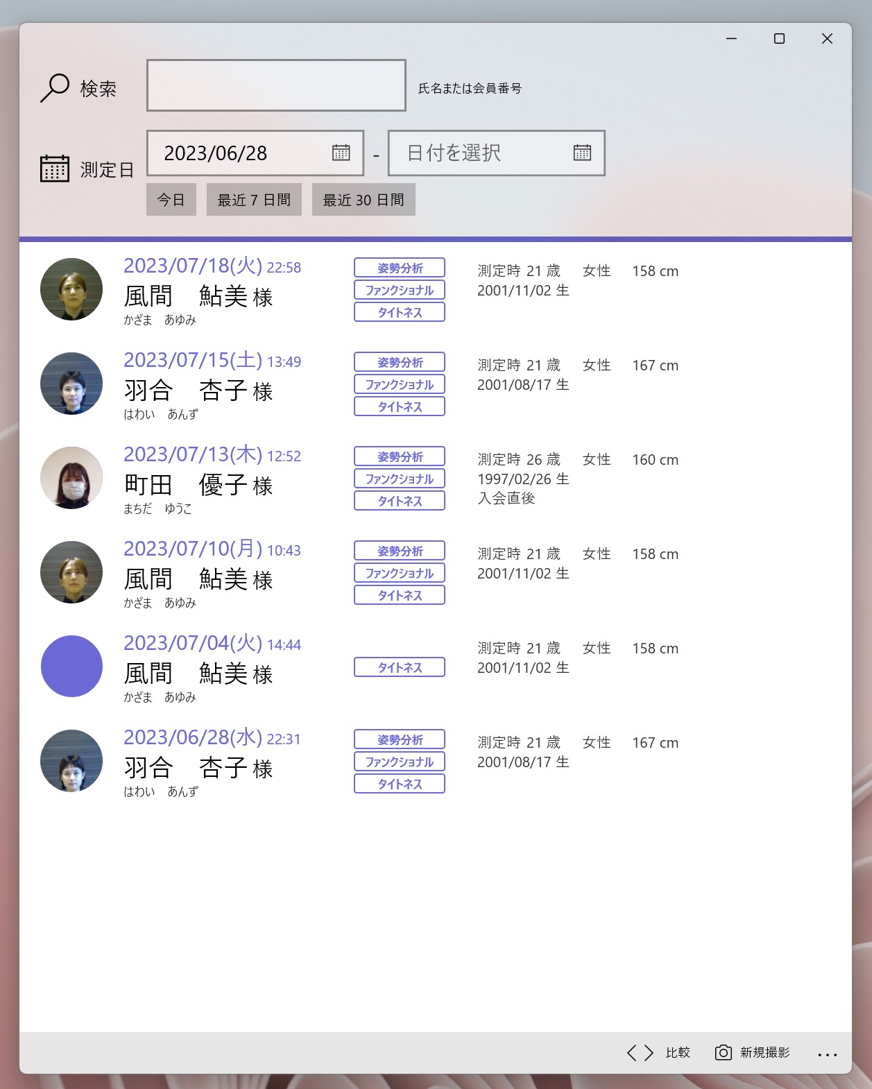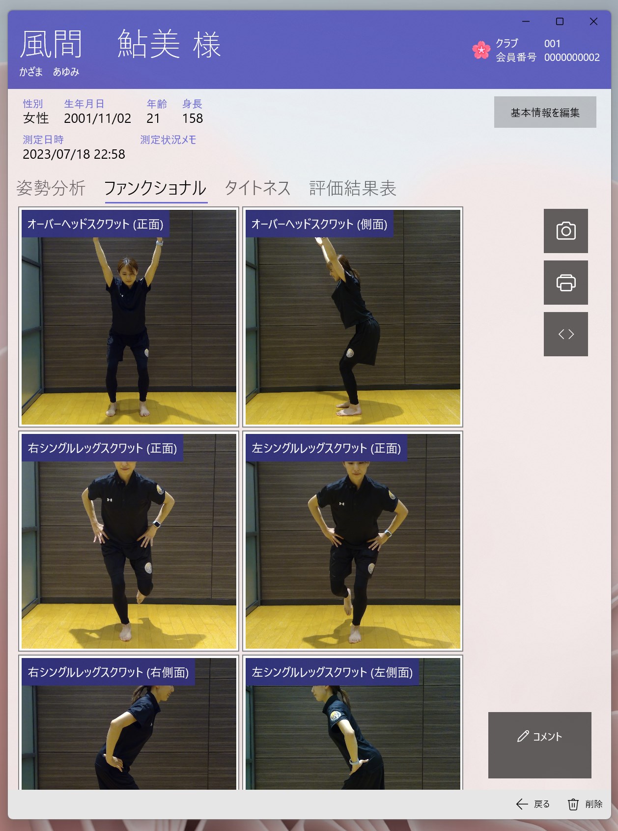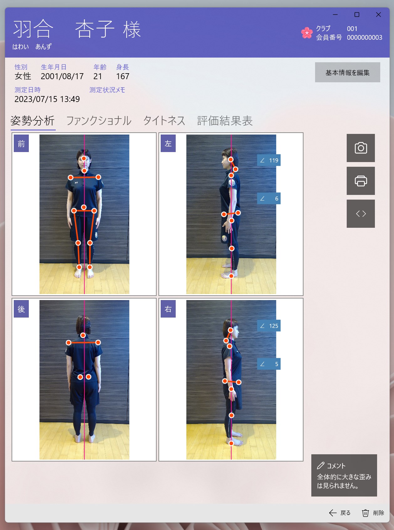 ・姿勢分析、ファンクショナルテストについては、前回と今回を比較し、タイトネスについては今回、前回に加えて前々回も比較します。