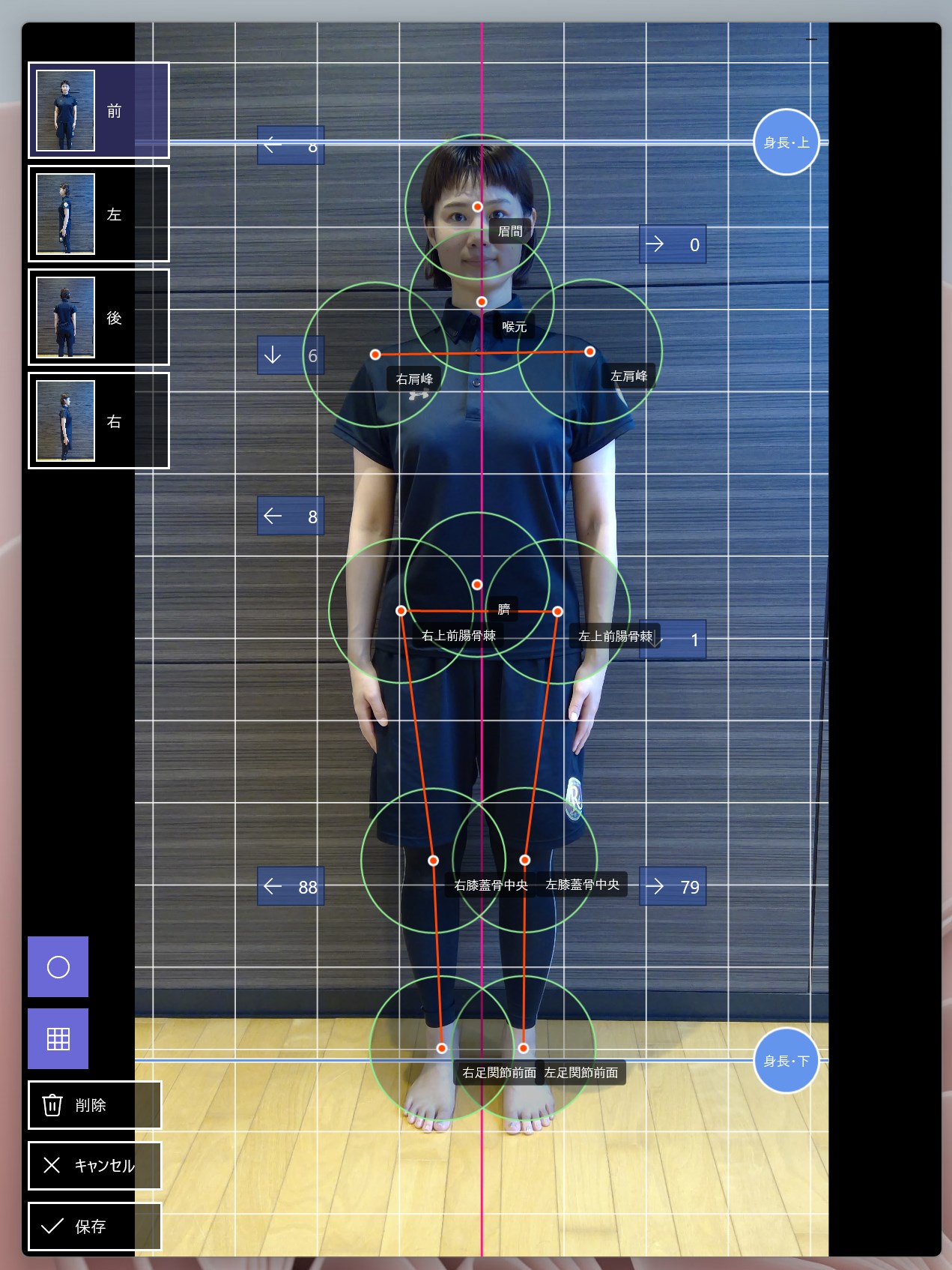 BodyCheckはカメラでお客様の姿勢を撮影し、歪みを数値化することでスポーツトレーナー様、整体師様、理学療法士様の施術をサポートするアプリです。
