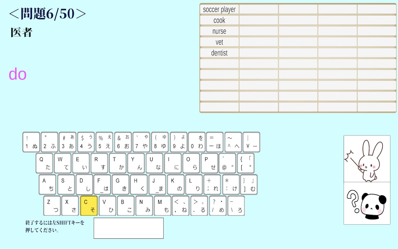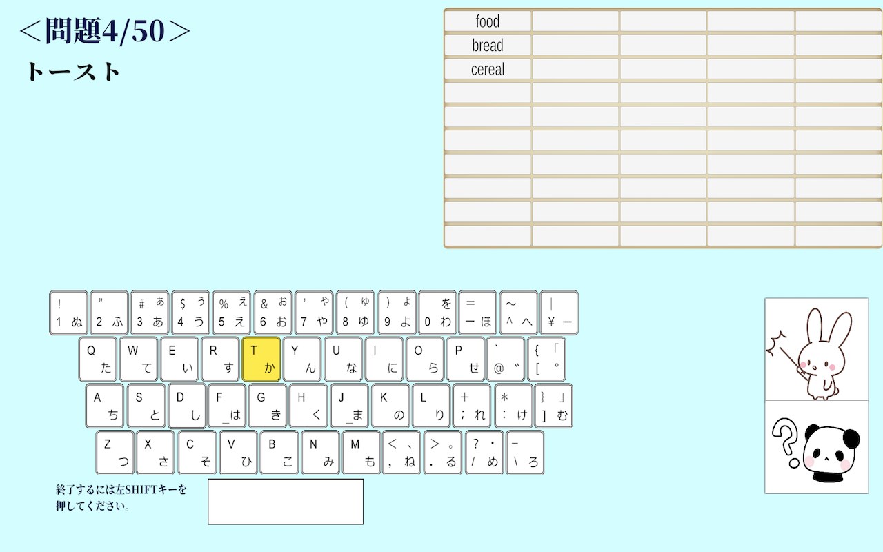 タイピング入力で英単語を学習するアプリです。小学校で習う550語を収録しています。スペルを指先の感覚で覚えることができます。