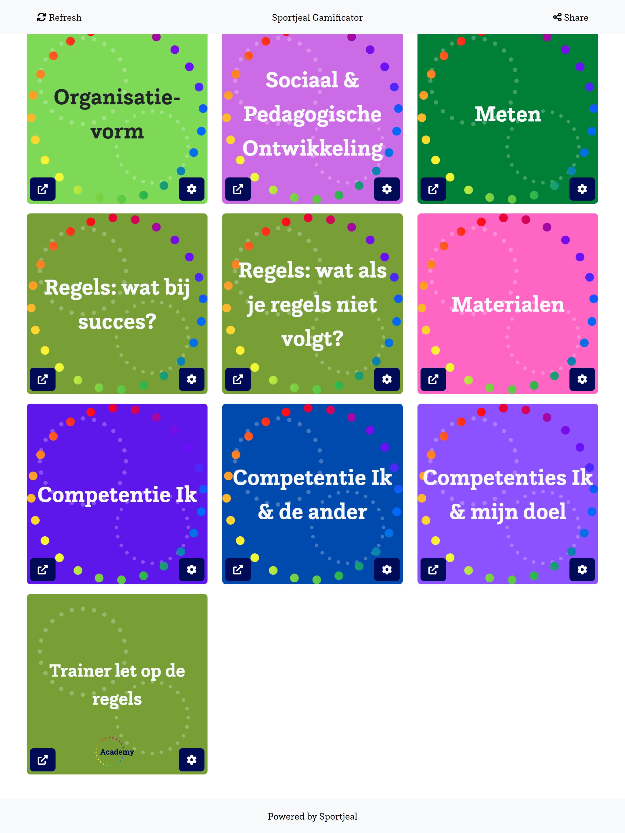Met de Gamificator van Sportjeal creëer je originele en leuke trainingsonderdelen. De Gamificator geeft makkelijk de elementen aan die jij in jouw trainingsonderdeel kan toepassen.