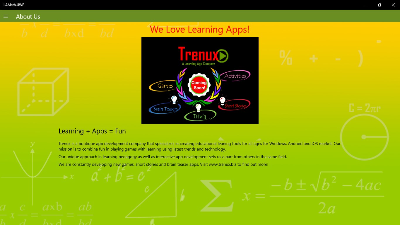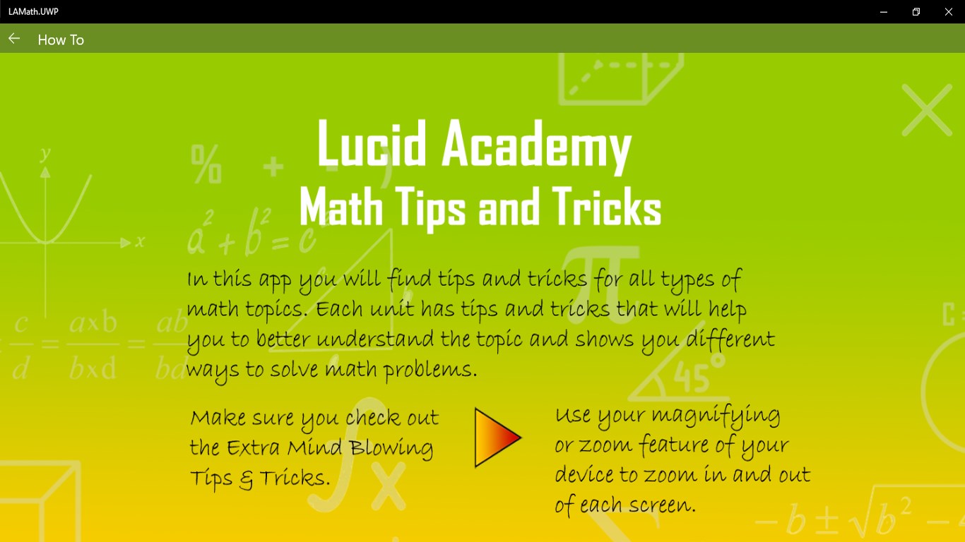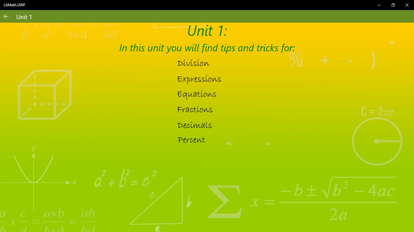 If you want to improve your math skills, this is the right app for you. The goal of the app is to enrich and improve your knowledge of middle-school math topics. Nonetheless, this app is suited for all ages as it covers a variety of topics with examples and contains no ads or in-app purchases.