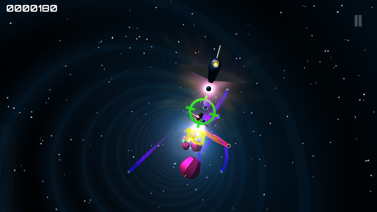 Your mission is to clear the wormhole in order for it to be safe for other ships to travel through it, but the gravitational attraction inside is so strong that even objects with a small mass can affect the trajectory of other objects flying around, this can be an advantage or a disadvantage depending on the amount, speed and mass of the nearby objects so be sure to take that into account and don't get distracted because there are enemies patrolling the wormhole and they'll fight you if they detect you.