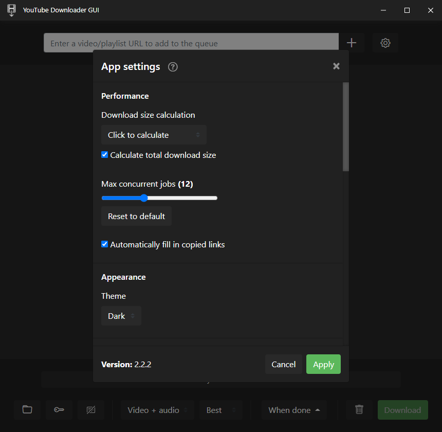 Download from all kind of platforms: YouTube, vimeo, twitter & many moreDownload multiple videos/playlists/channels in one goSelect the resolution and format you want to download inDownload private videosMultithreaded, up to 32 videos can be downloaded synchronouslyShows how much size the download will use up on your systemThe app automatically keeps ytdl up-to-date