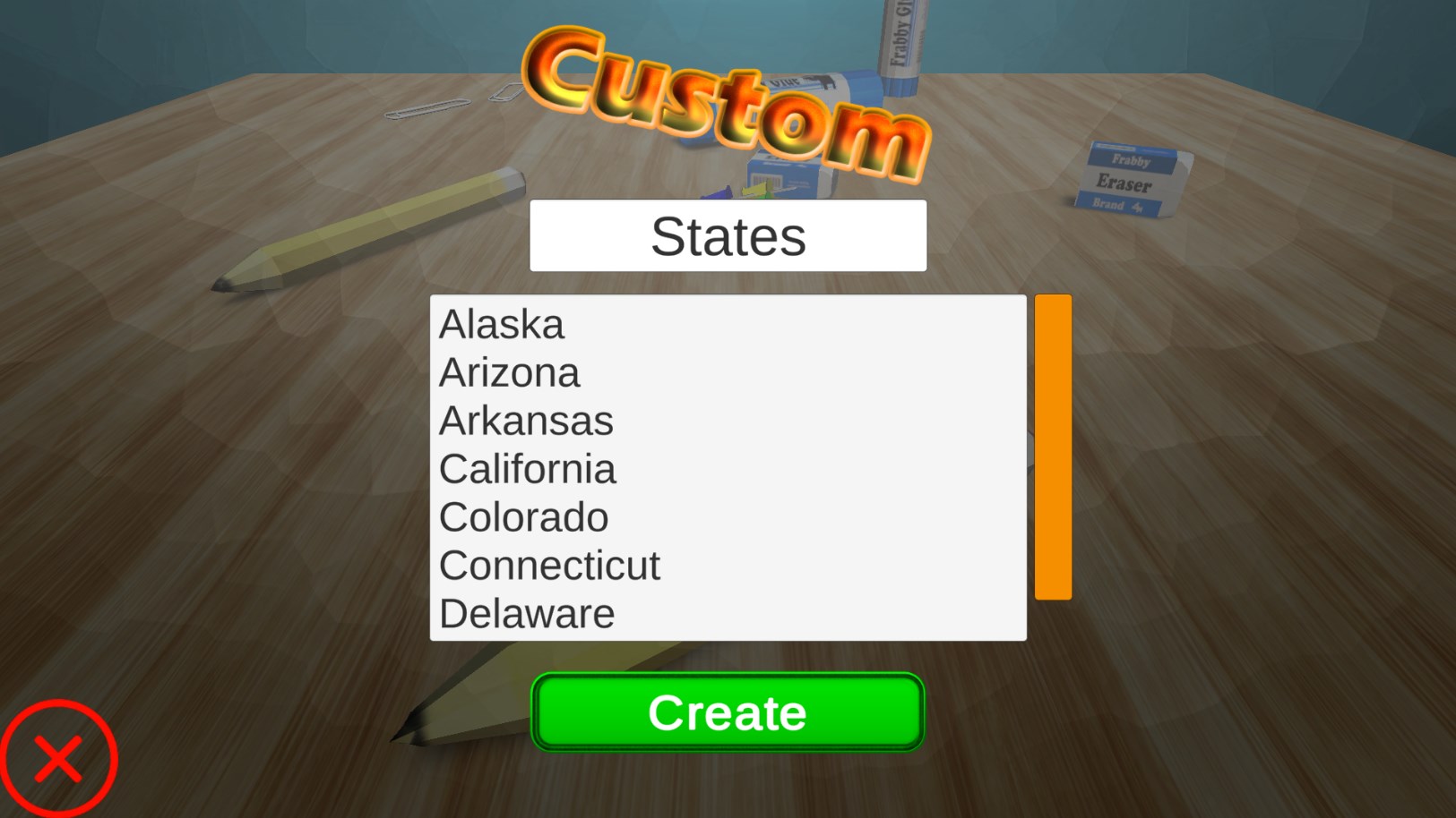 -> Custom Tests****: Make your own tests! Copy and paste a list. Such as state names, spelling test vocabulary, long science words for university, etc..