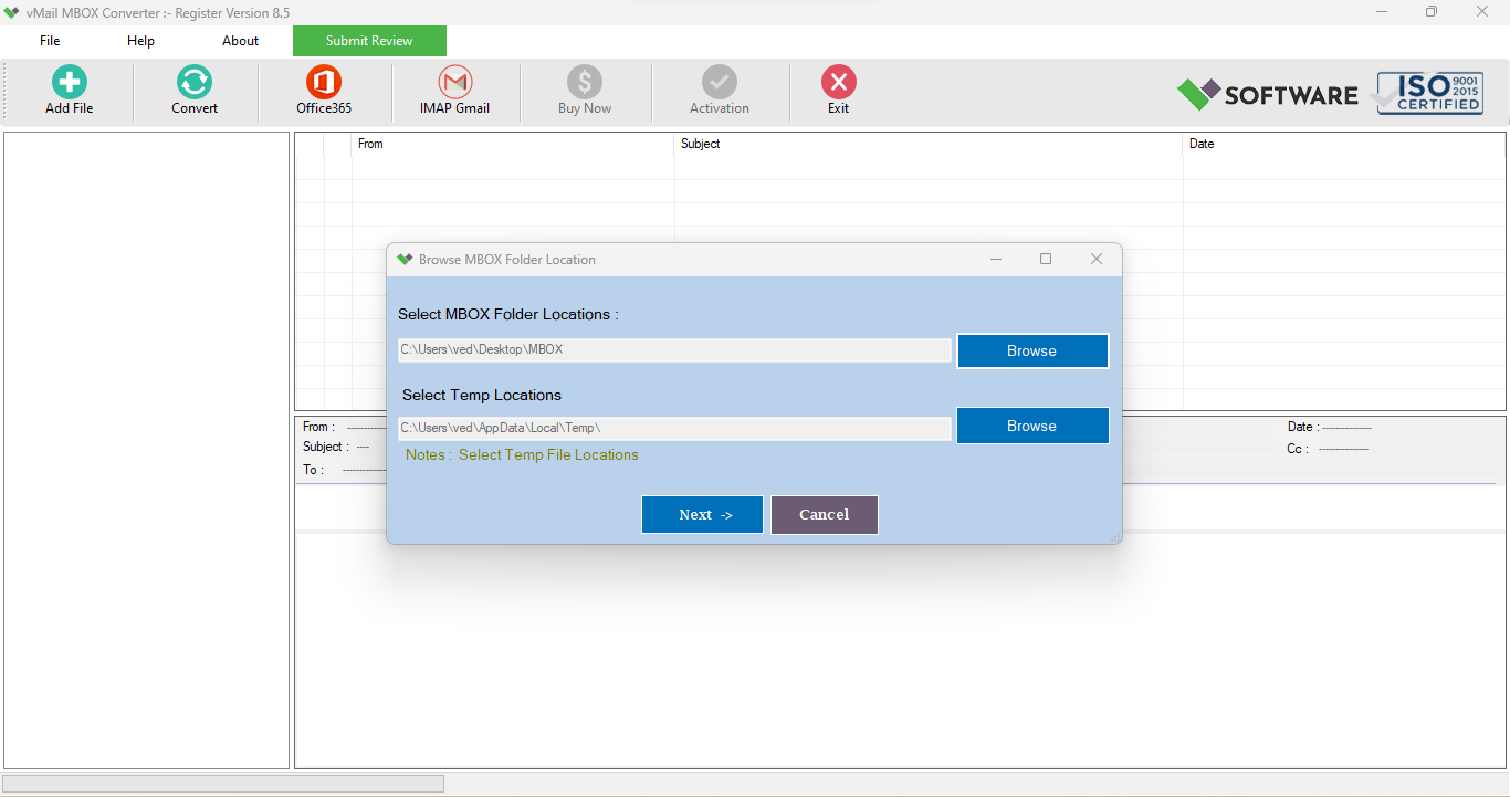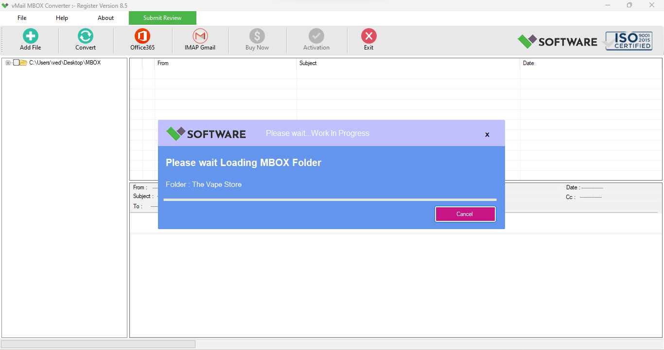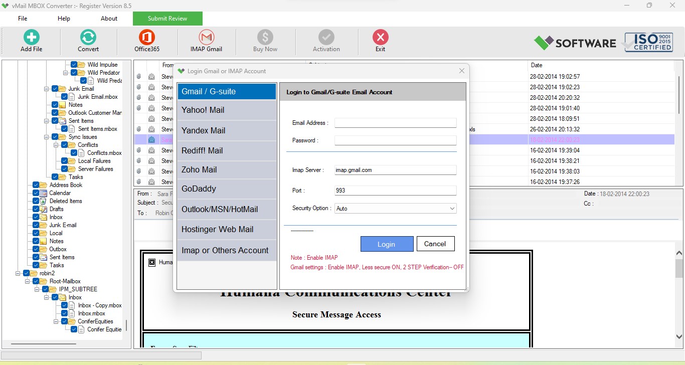 MBOX Converter manage multiple MBOX File.vMail MBOX Converter supports all mbox file from multiple email clients Supported Email Client like as Thunderbird, Eudora, Bat, Seamonkey MBOX File.Compatible Entourage, Pocomail, Spicebird, Gmail Takeout,Apple Mail MBOX FileAllows selective MBOX file ConversionConvert any size of MBOX file into outlook pst fileMBOX to PST Converter Maintain original folder structure in PST file from MBOX file.MBOX File Converter can convert into PST, MBOX, EML, and HTML & MSG FormatsMigrates email from MBOX File to Office 365.MBOX To Office 365 Cloud Migration by vMail MBOX ConverterImport MBOX File Message into Yahoo! Mail/Gmail/ G-Suite