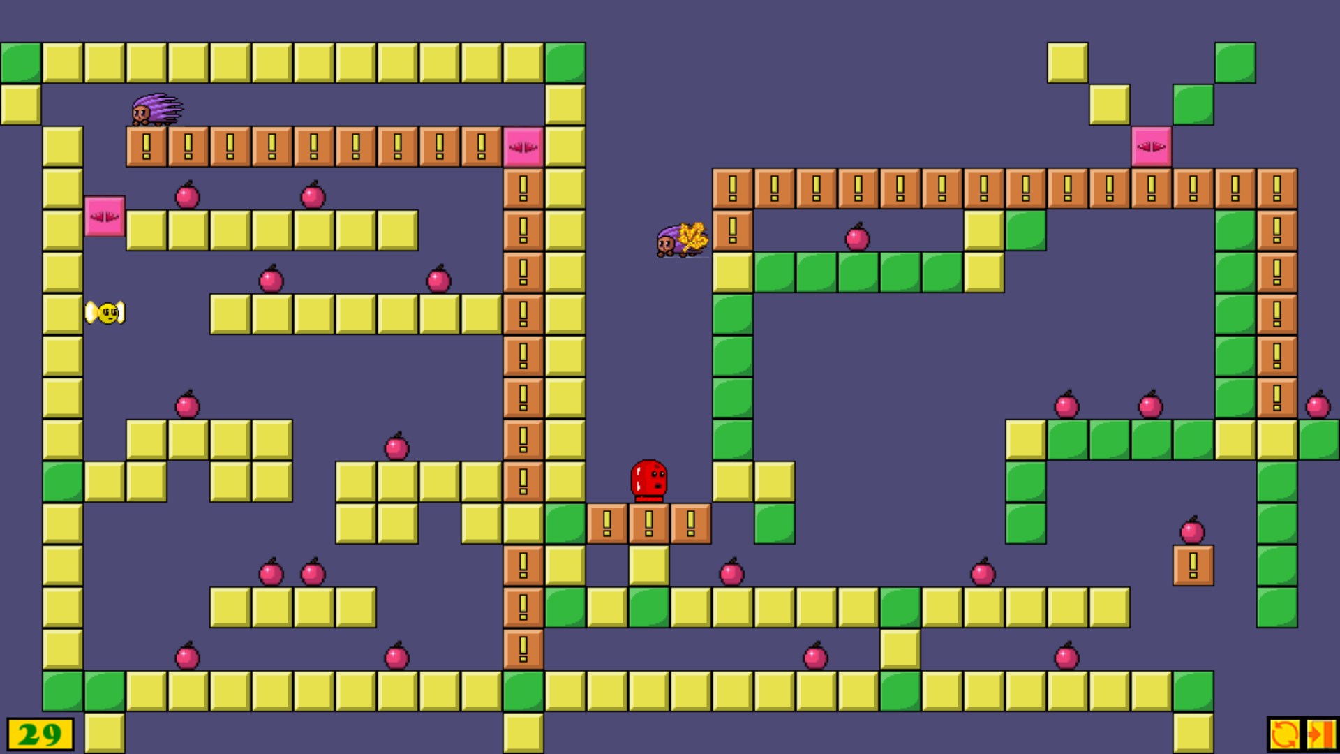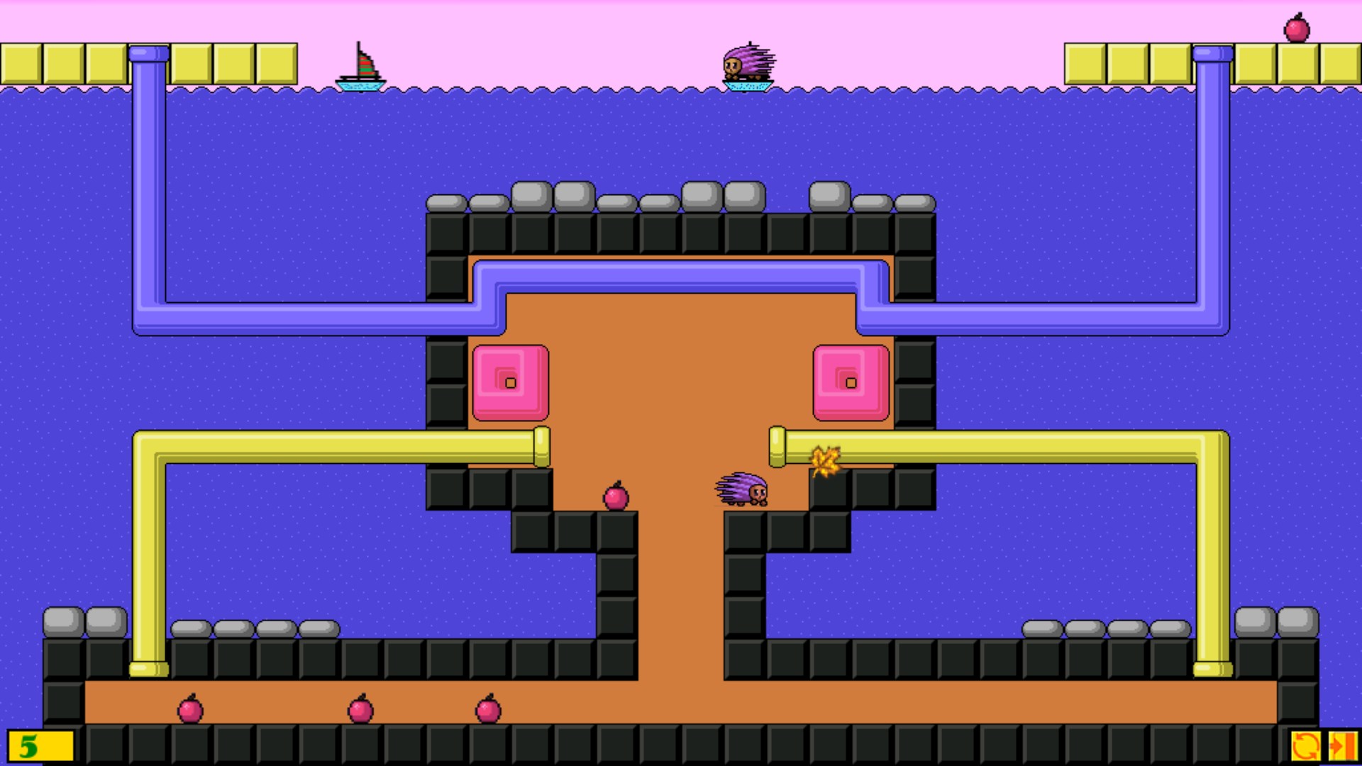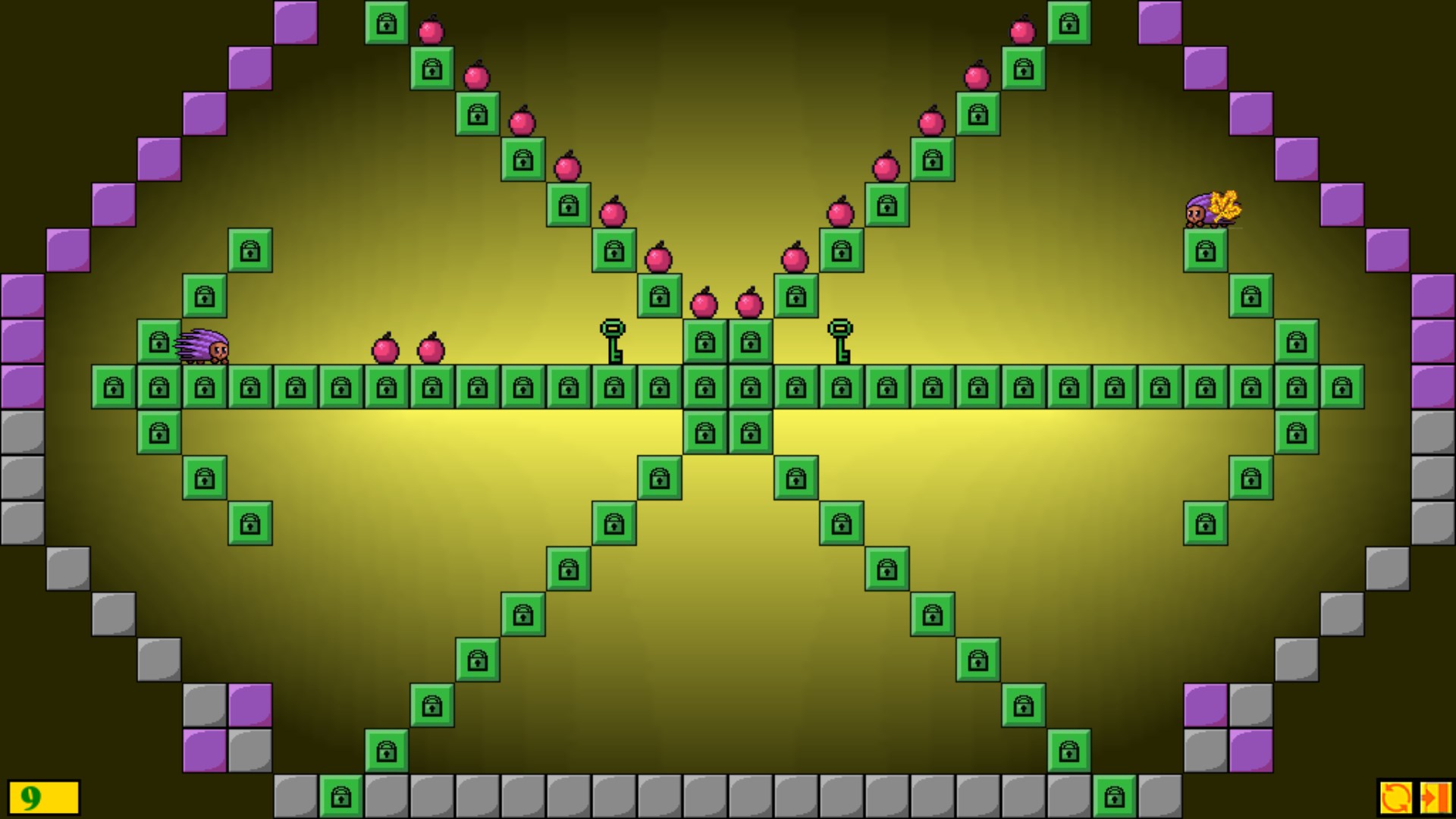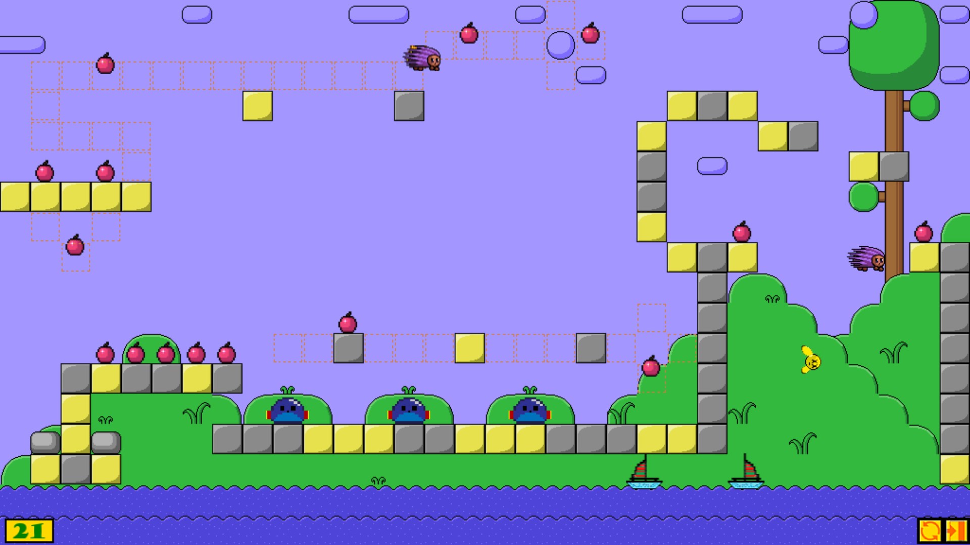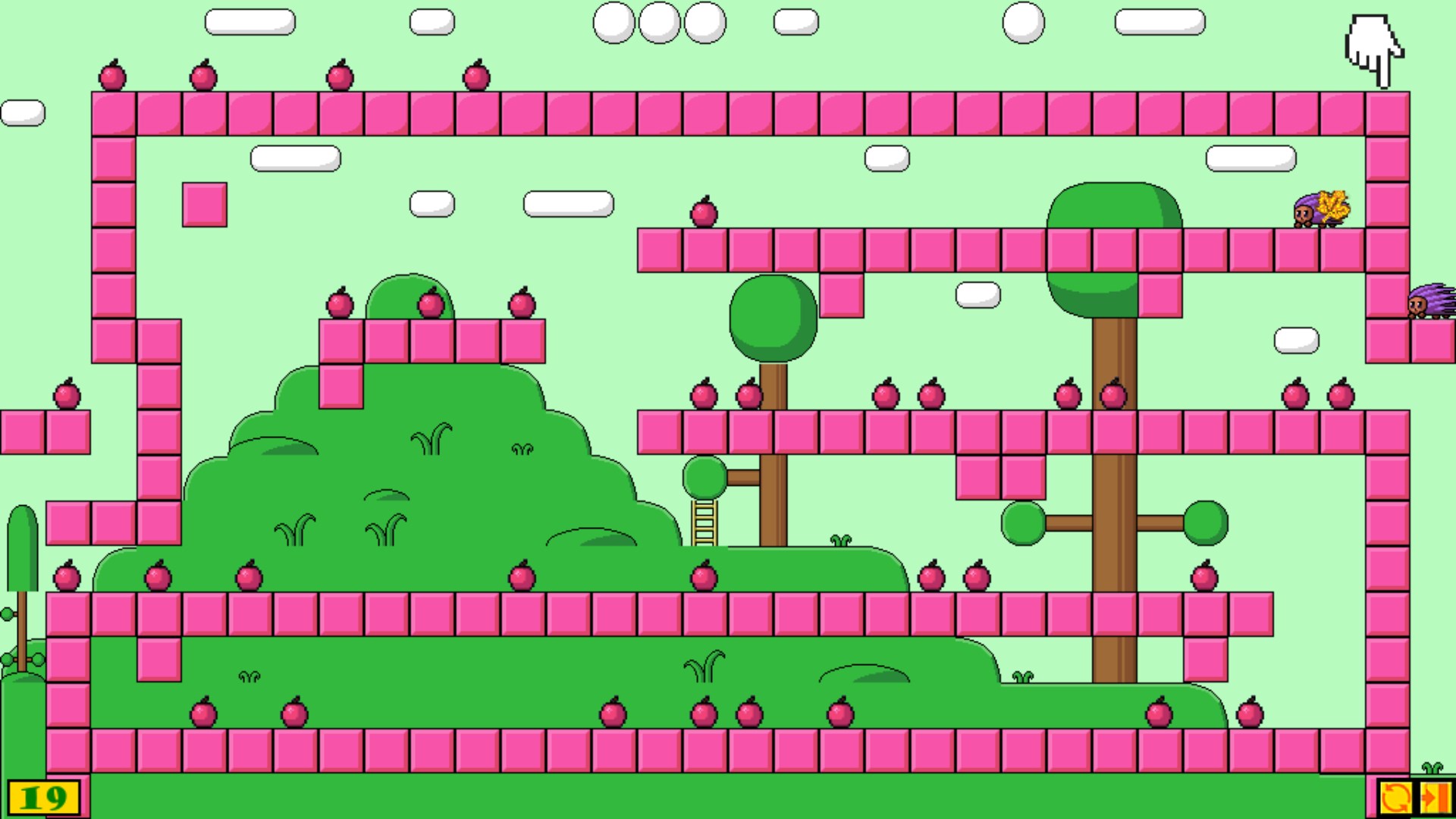 The level is passed when the hedgehogs collect all the apples.