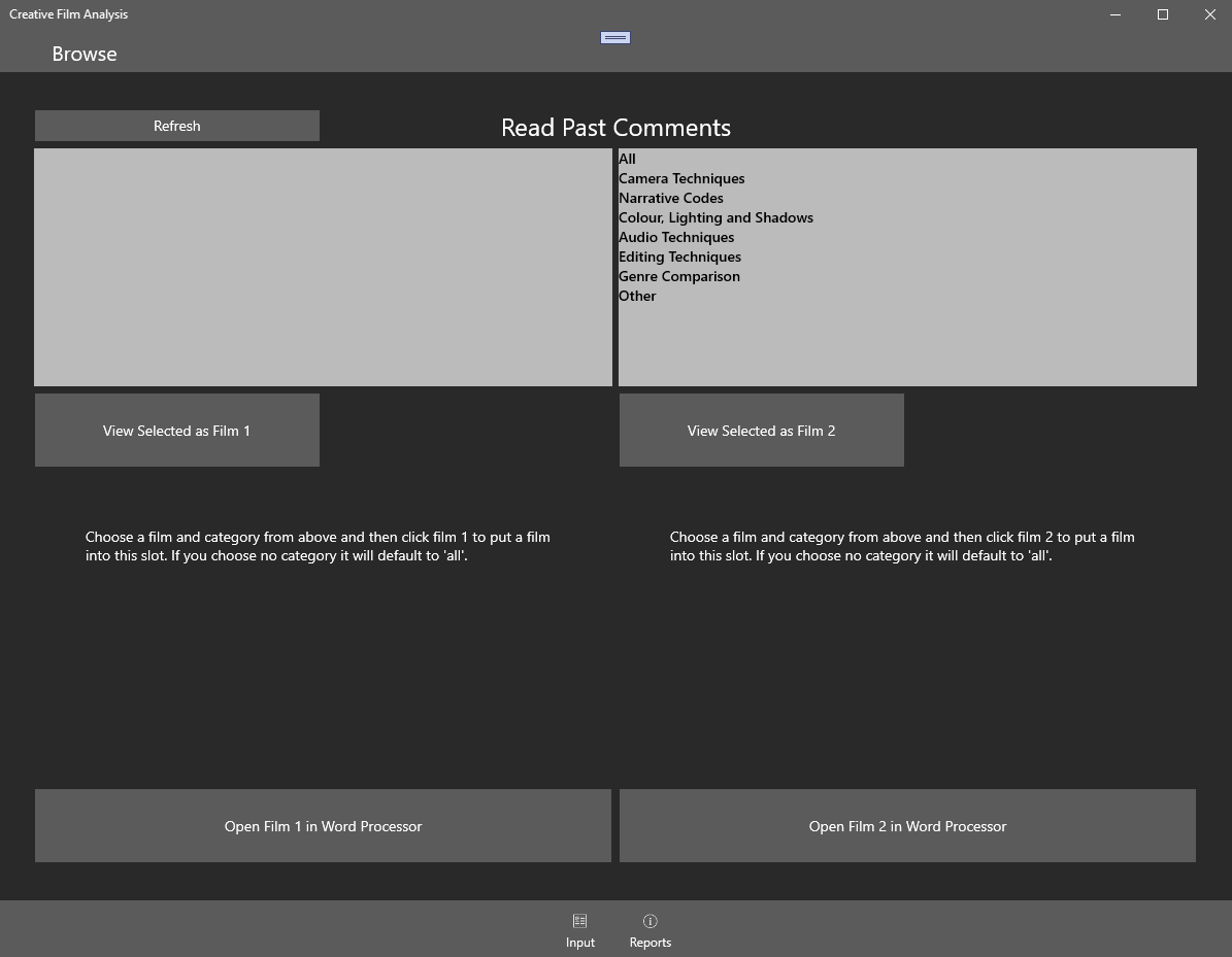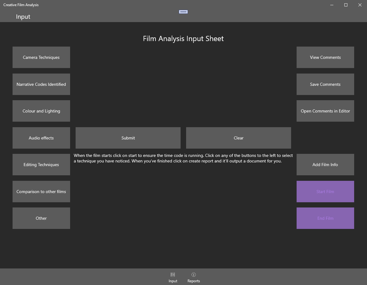 Basic Application for Film Analysis for Creative Digital Media Course, still in BETA.