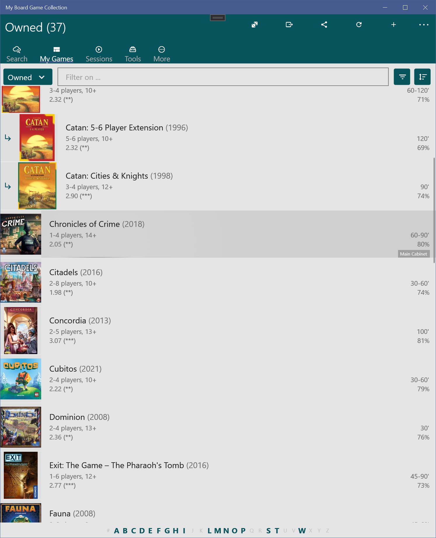 - Enable the 'fast jump' on the bottom of the boardgame list.