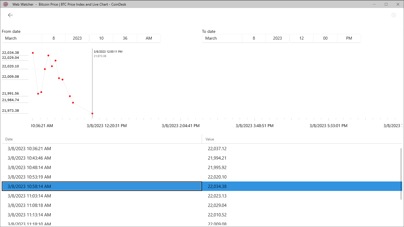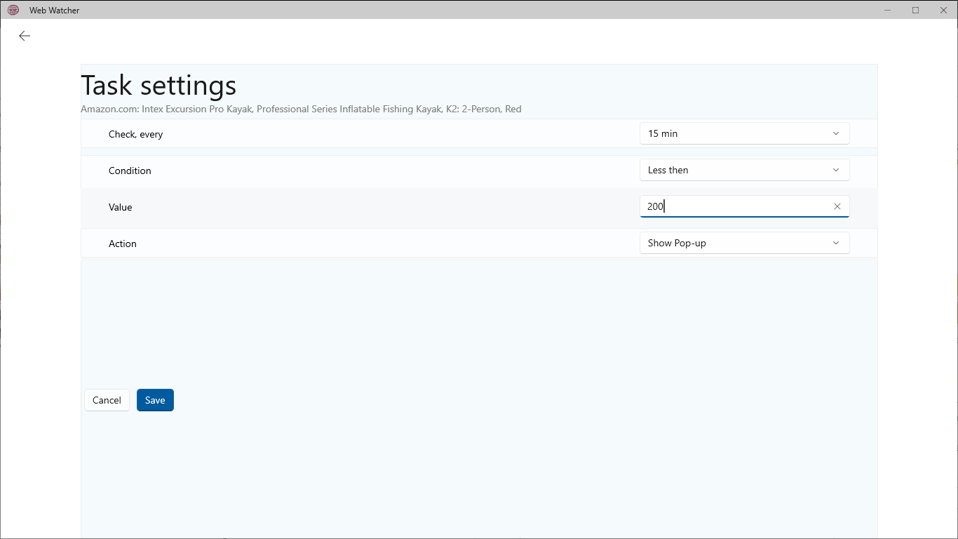Webwatcher is a website change monitor application. You will be notified as soon as a specified value changes on the tracking website via Email or push notification. Just a few clicks are required to create a new tracking task. You can create as more as you want tasks.