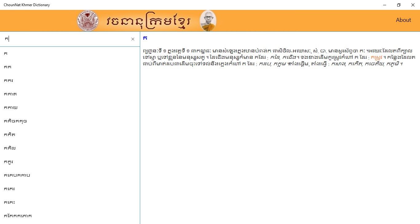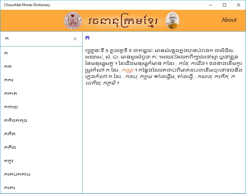 ChounNat Khmer Dictionary app is a Khmer to Khmer dictionary which help explaining difficult Khmer word for easy understanding.