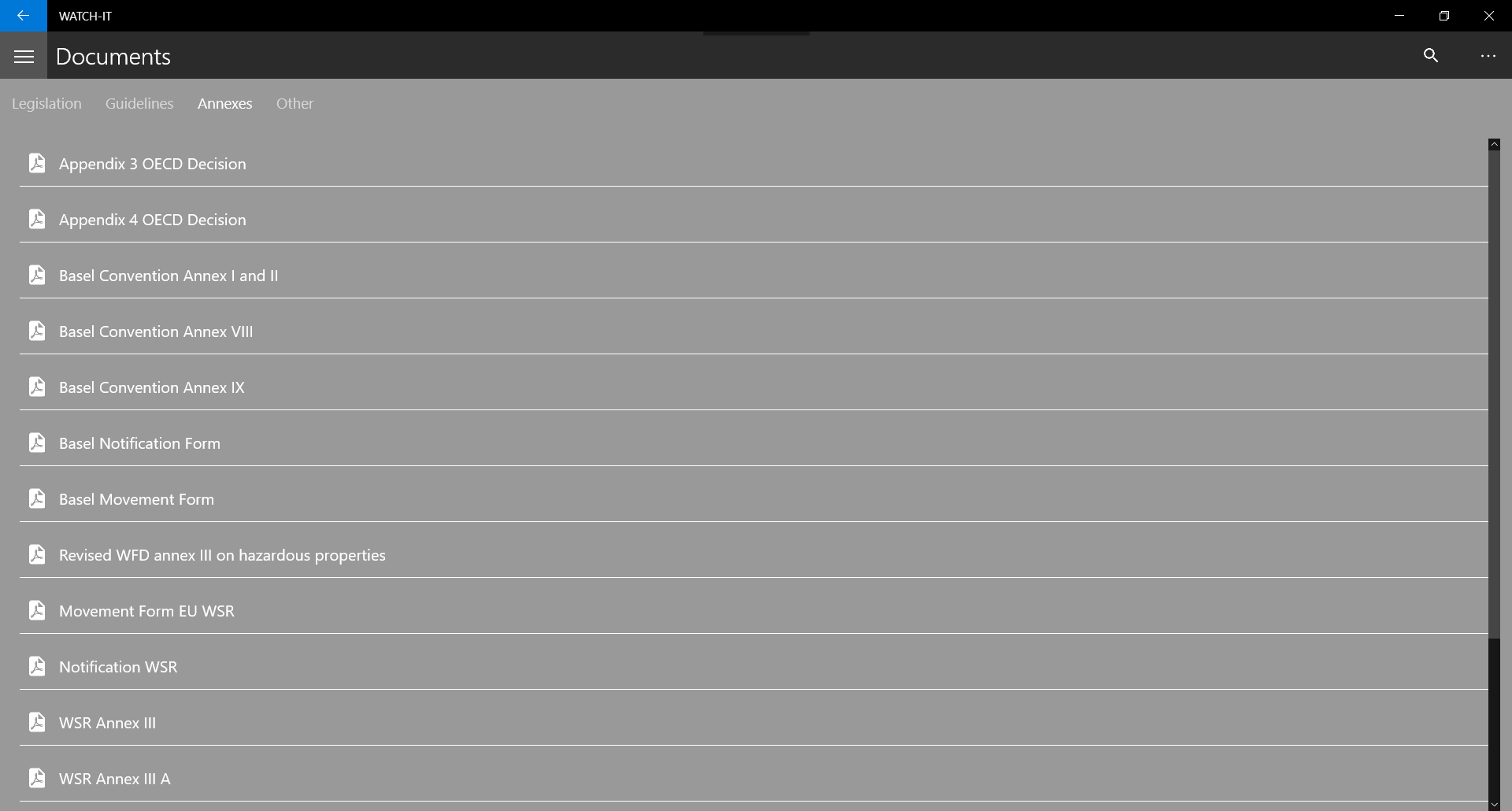 This app provides searchable databases with all annexes containing waste and chemicals, covered by the scope of international and regional agreements. You can search by waste code, chemicals code, customs code or name. It also includes a variety of references, such as guidelines and example documents.