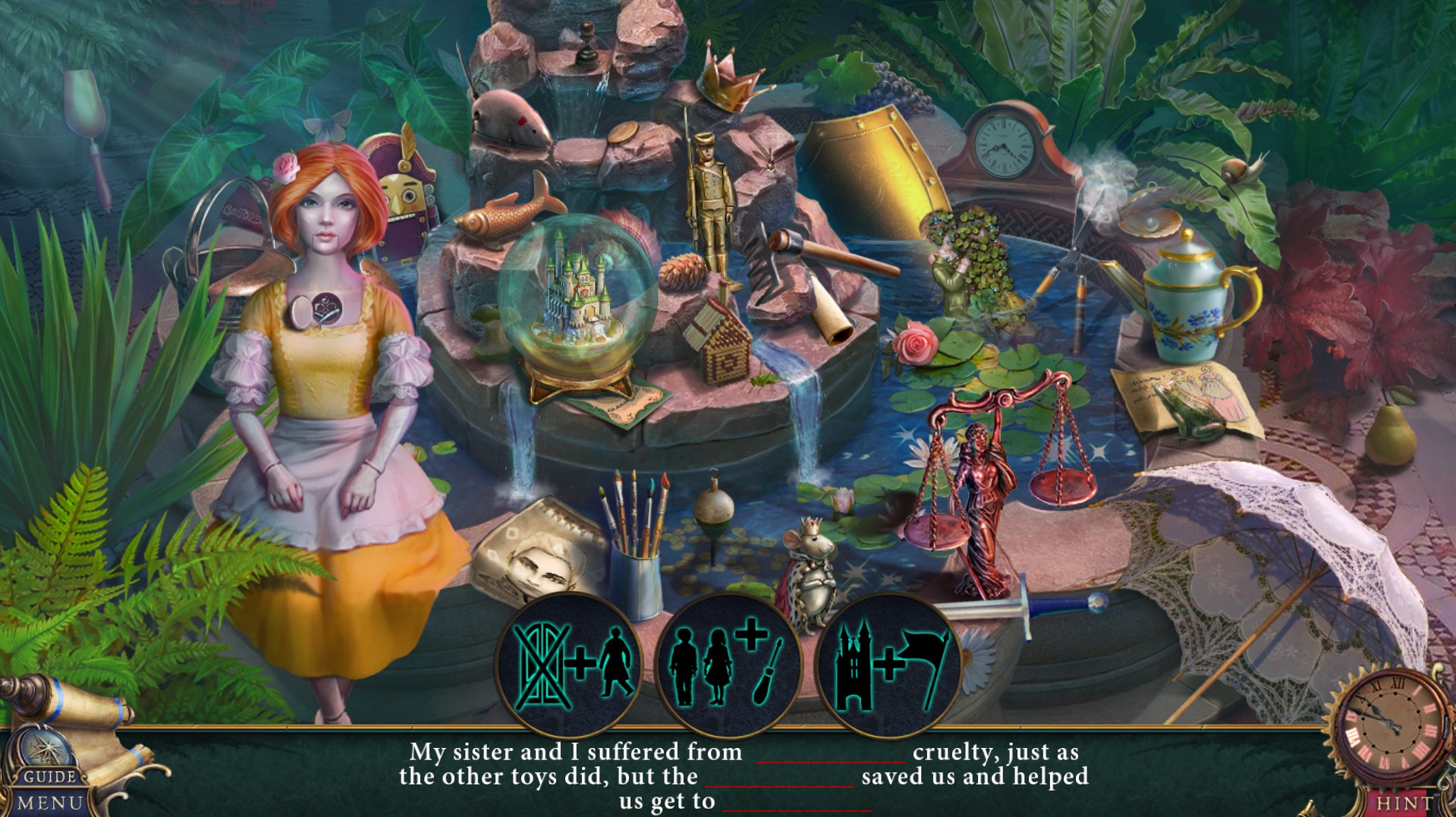 When Marie visits Drosselmeyer’s toy workshop for the first Christmas since she was a little girl, she finds her childhood friend, Fritz, missing. Soon, the clues lead her to Spielland, the toy castle they imagined playing in together as children. But Spielland was just pretend… or was it? Can you help Marie make her way through a fantasy world of angry mice and living toys to rescue her best friend Fritz, her godfather Drosselmeyer, and learn the secret of the Nutcracker? Crack open this magical new Hidden-Object Puzzle Adventure and find out!