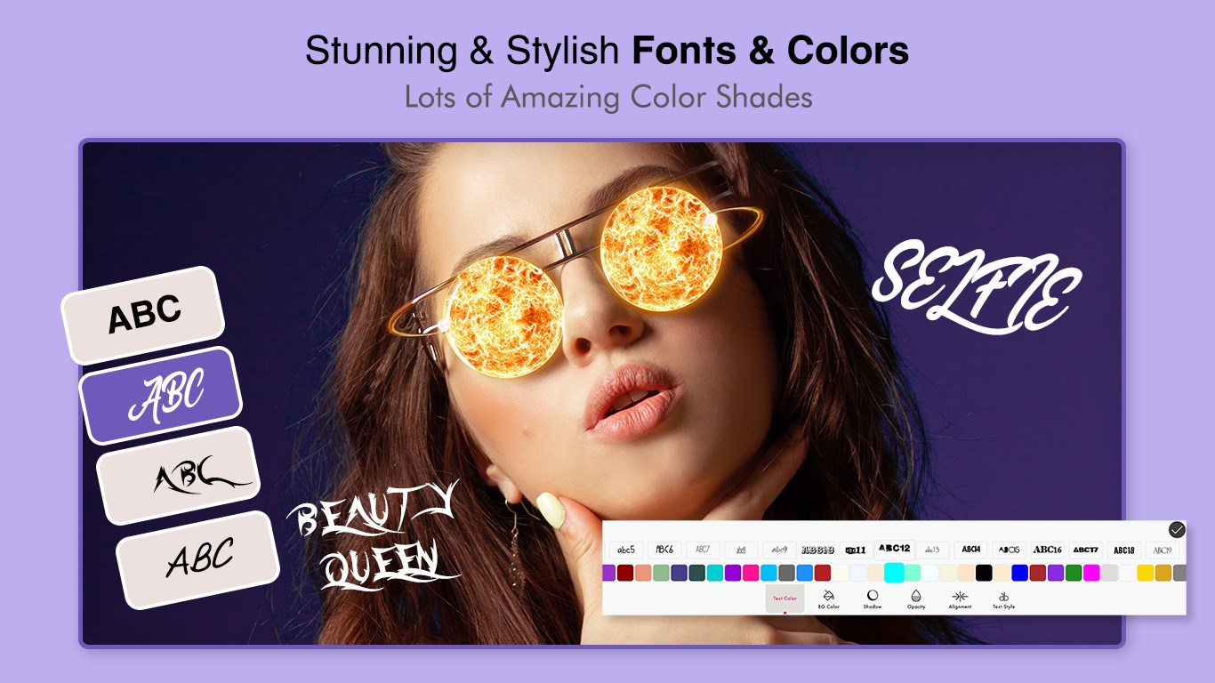 ** Add Text - Customized text, multiple font color options and 10+ font styles. Zoom, rotate and translate over image.