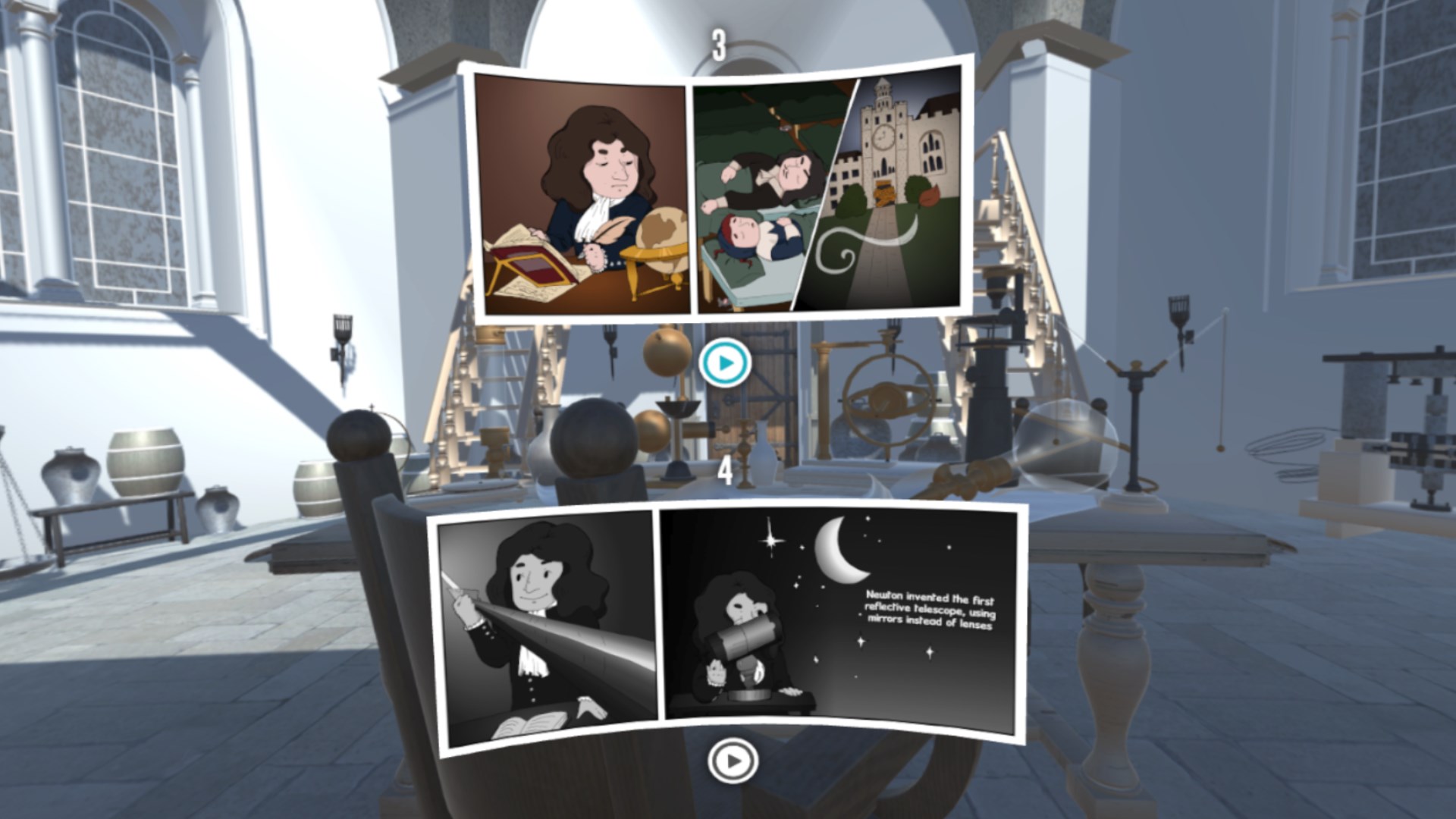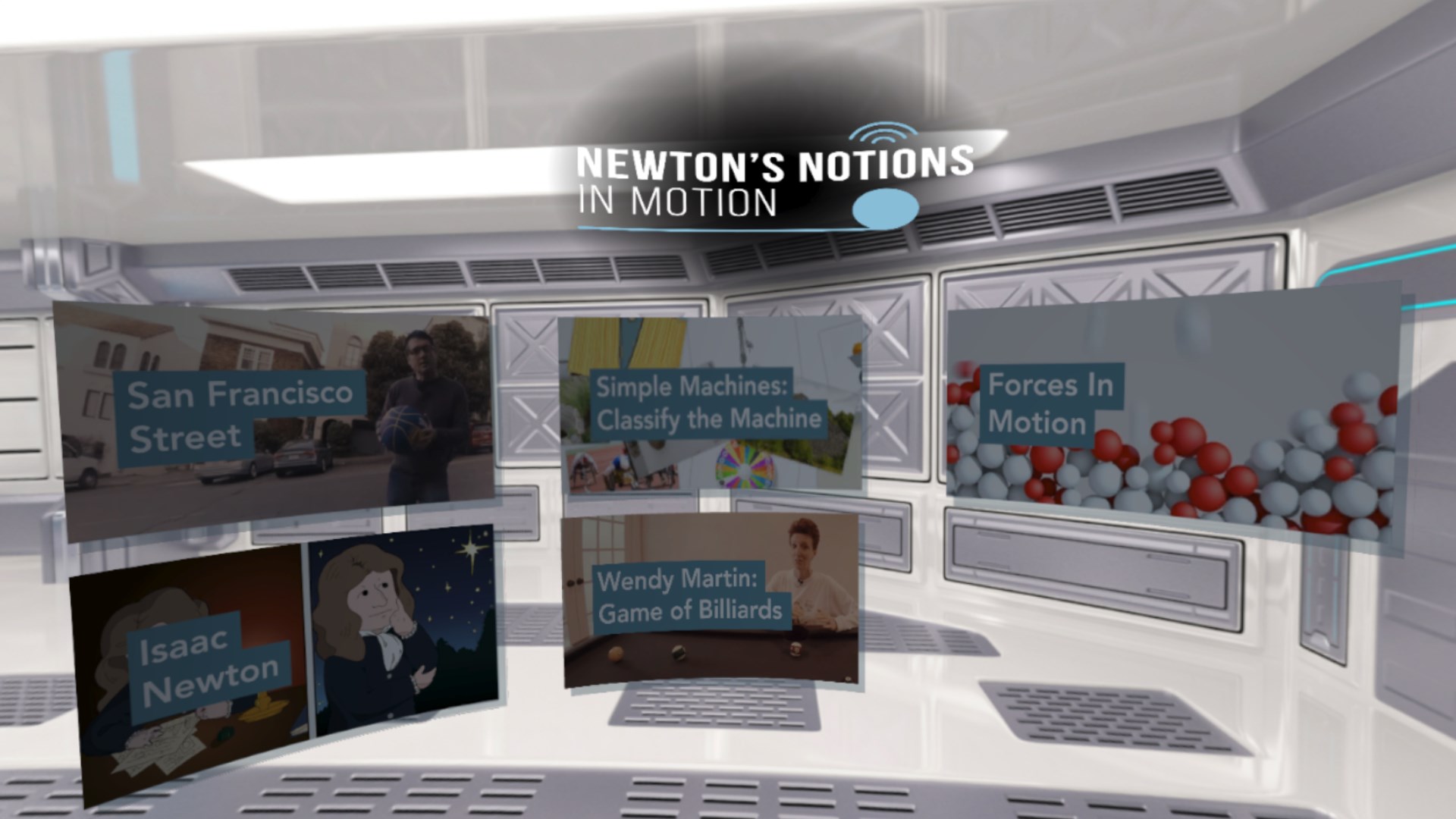 Gravity, motion, and force are given clear context using everyday objects in our natural surroundings.Shoot billiards with Wendy Martin, national award winning science teacher.Grab and drag the correct simple machine to its appropriate category in this interactive learning game.A mini-biography of Isaac Newton and his contributions to physics are conveyed in this virtual comic book.Witness Newton\’s 3 Laws of Motion in action via simple machines.All lessons are based on Next Gen Science Standards.All units are related to the concept of forces and interactions.See all of our VictoryVR units spanning 48 units of science.