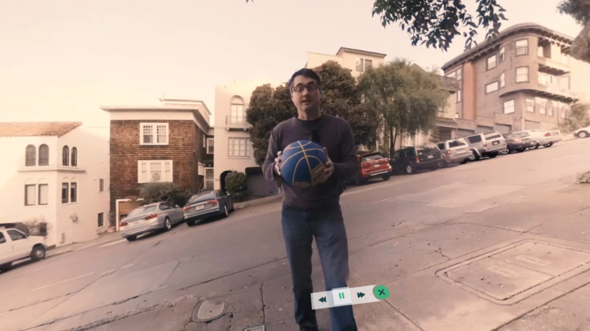Secure your footing on this hilly San Francisco street as you watch a basketball used to demonstrate the concepts of gravity, force, and motion.